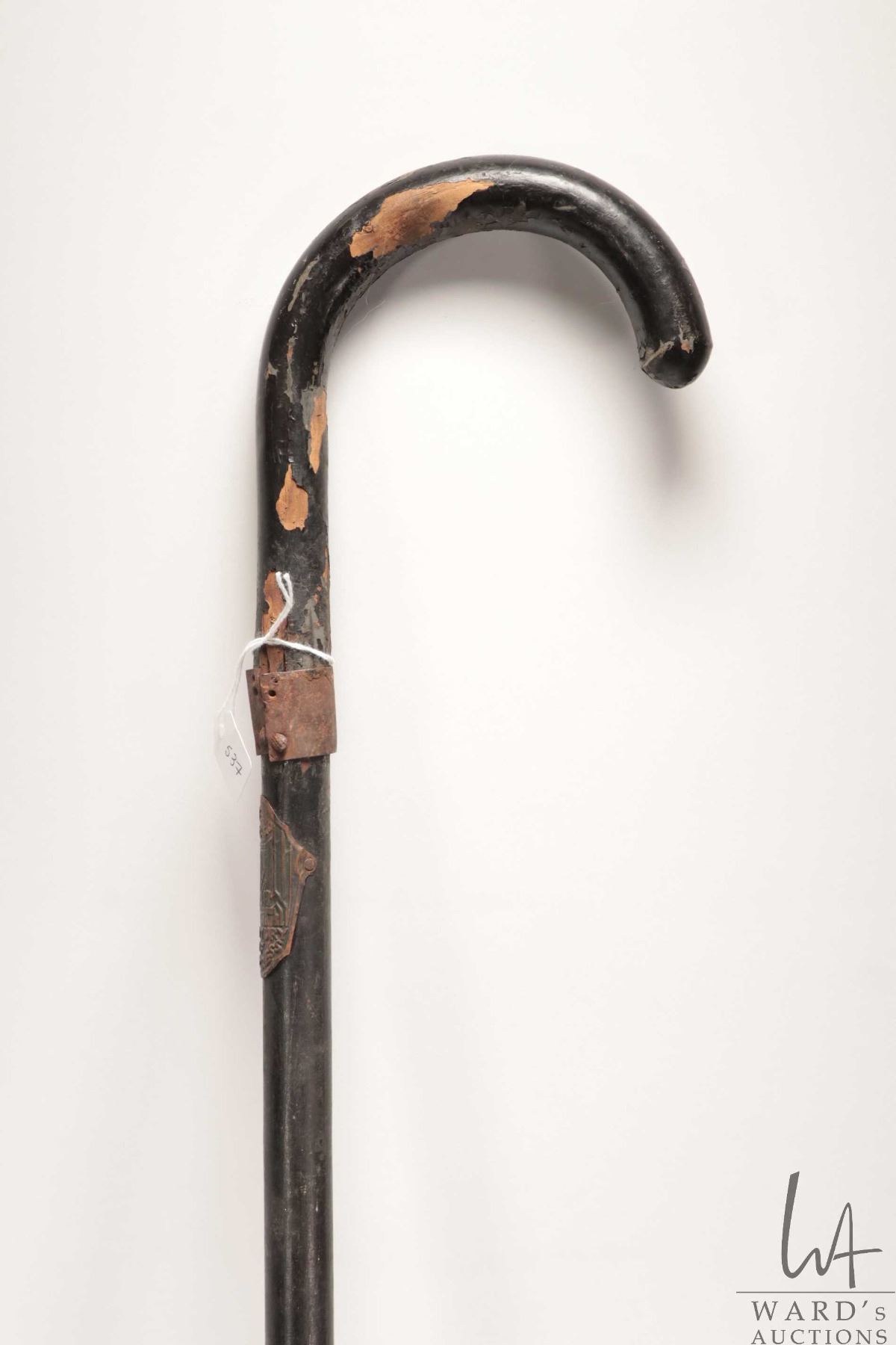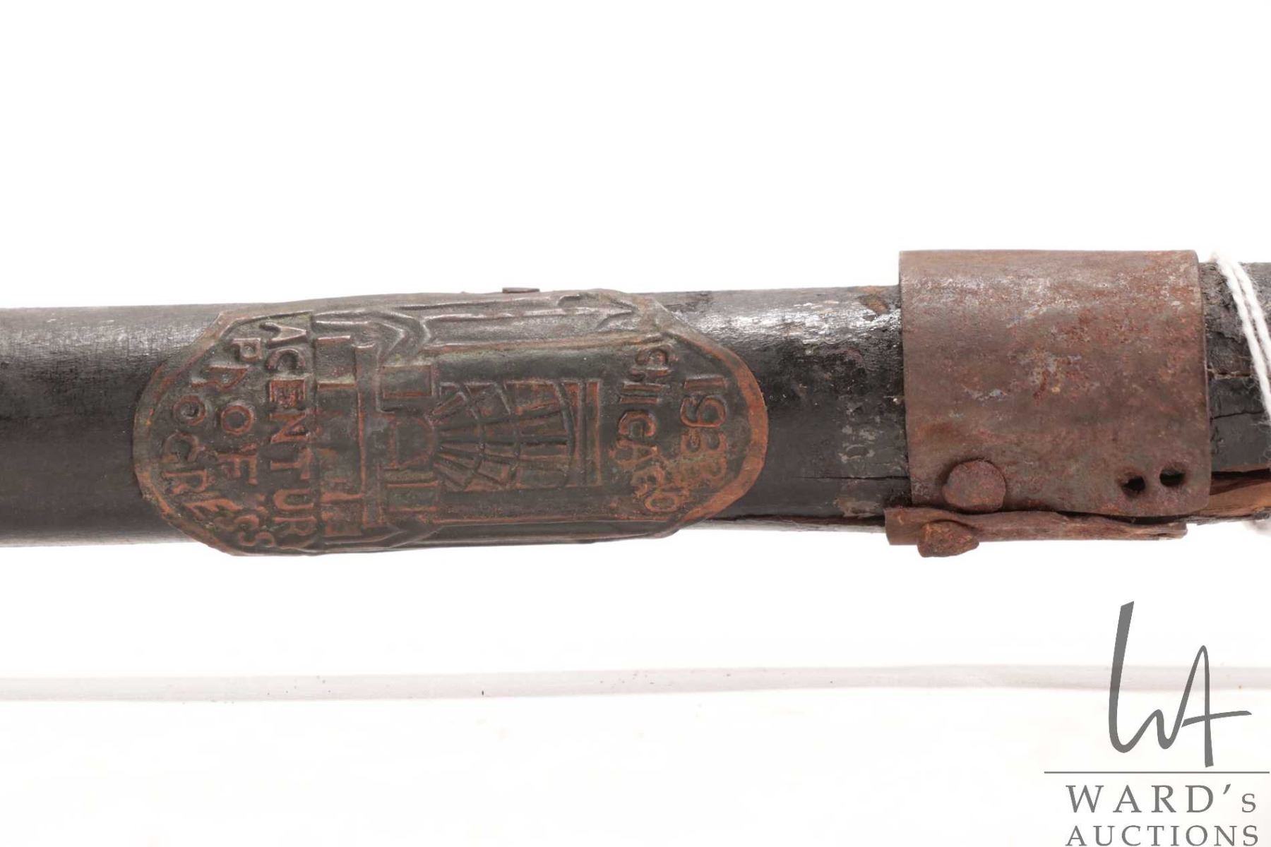 Antique cane with attached "Chicago 1933 A Century of Progress" metal stick badge, 34" in height