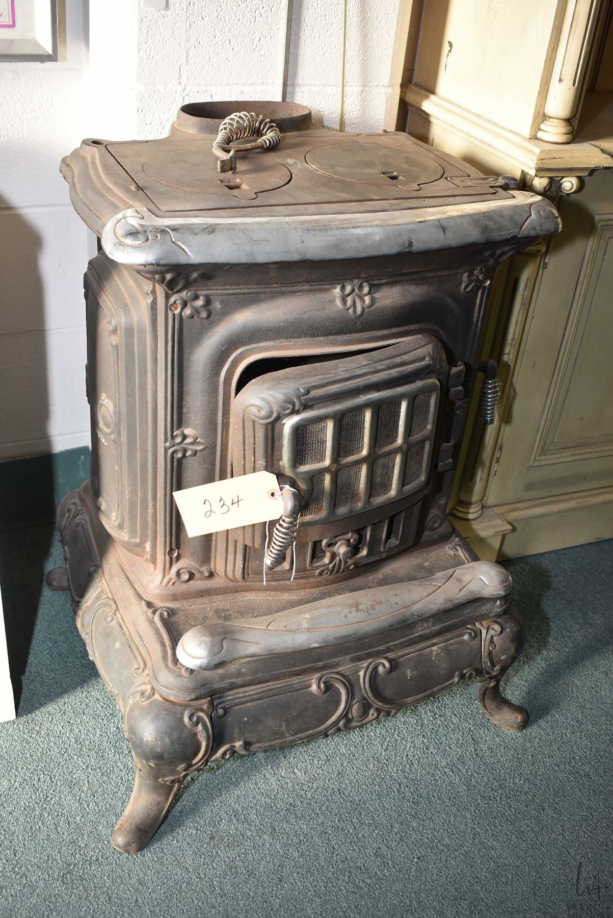 Antique cast metal No. 21 heat/cook stove 30". Note: This lot cannot be shipped. Local pickup only