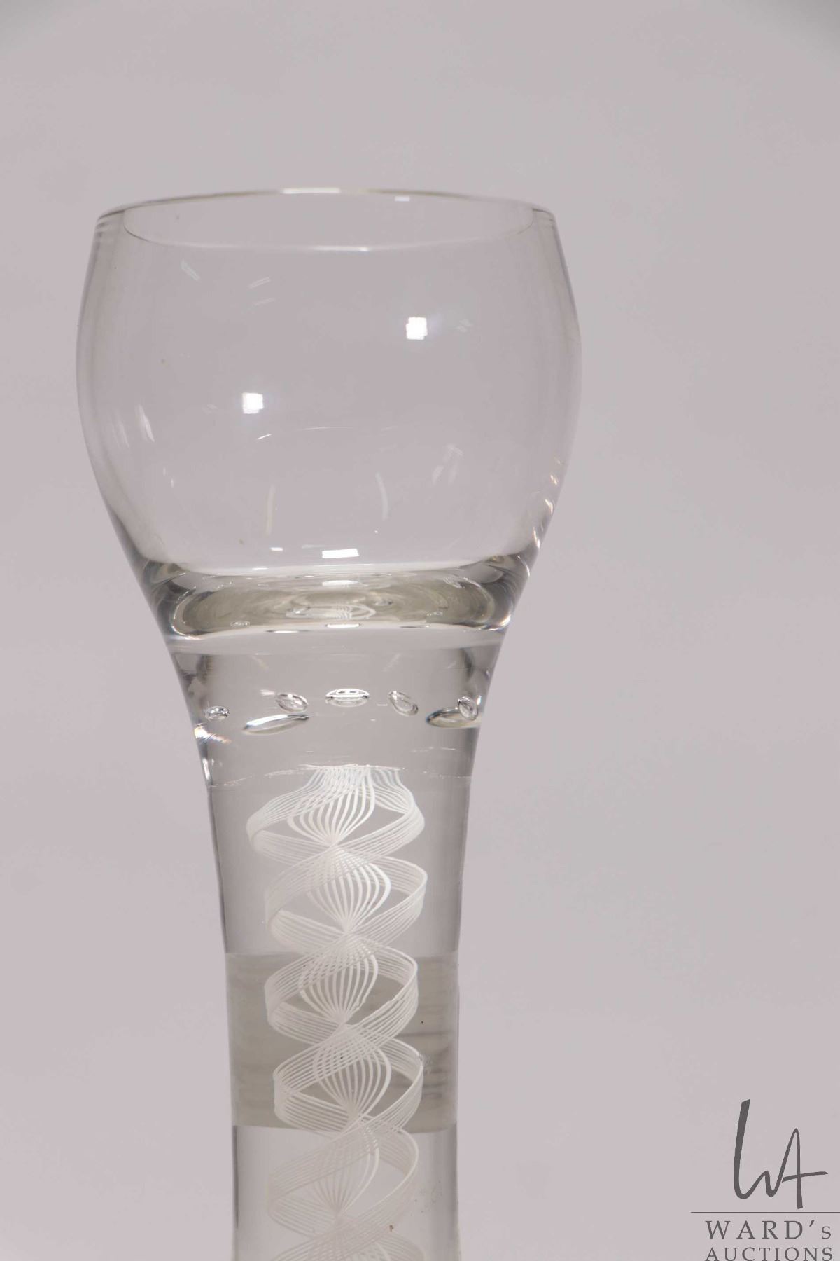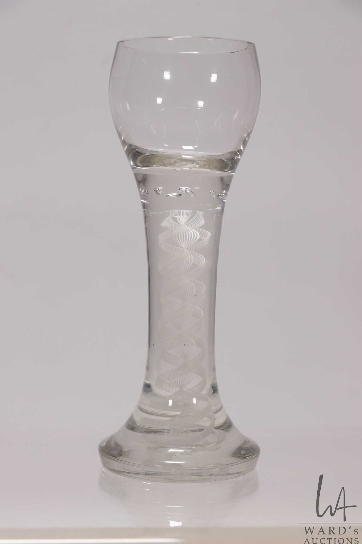 Antique cordial glass circa 1750 with double cotton twist and seven bubbles, 6  in height