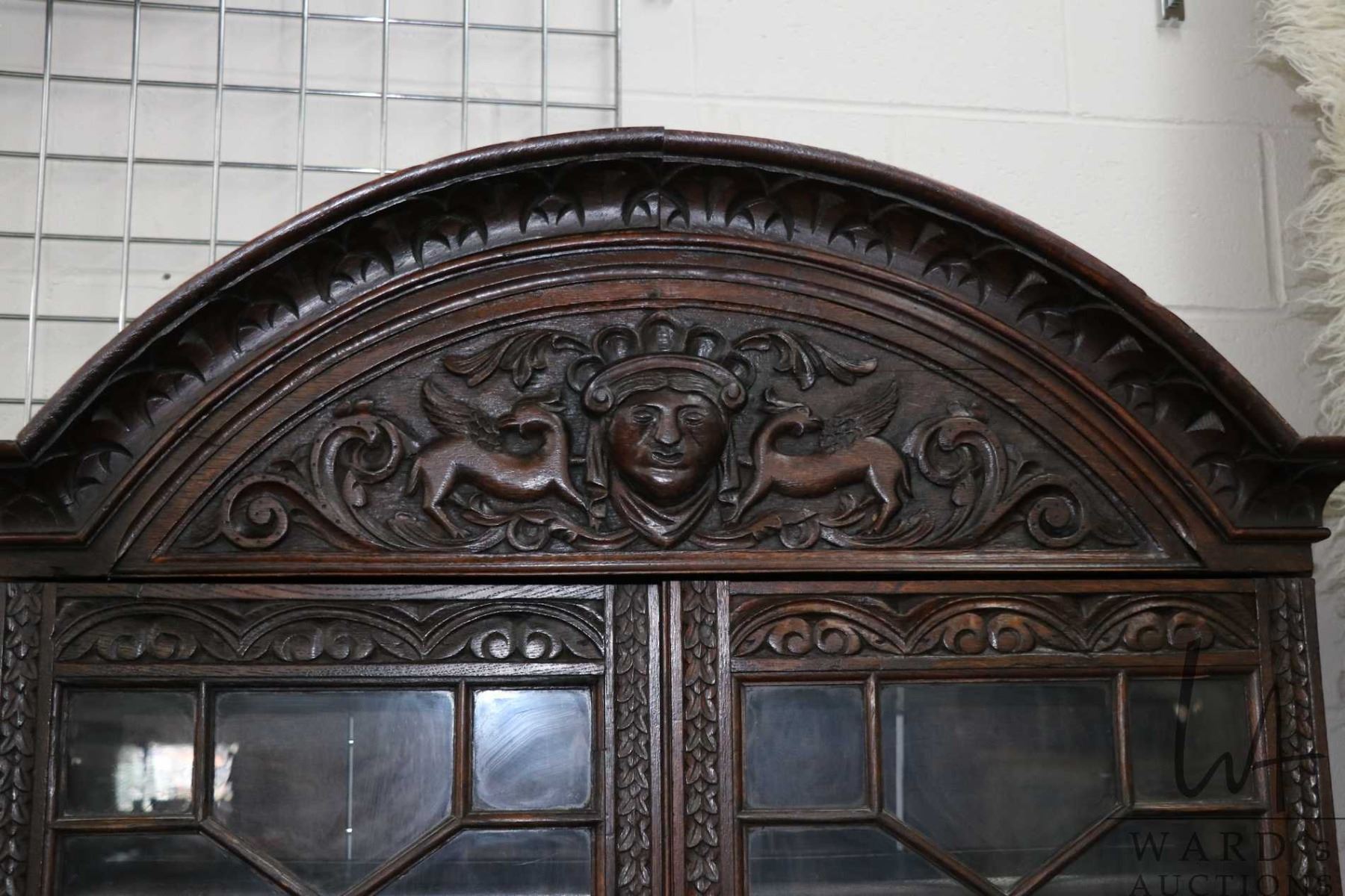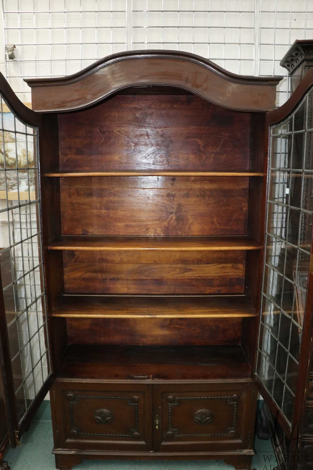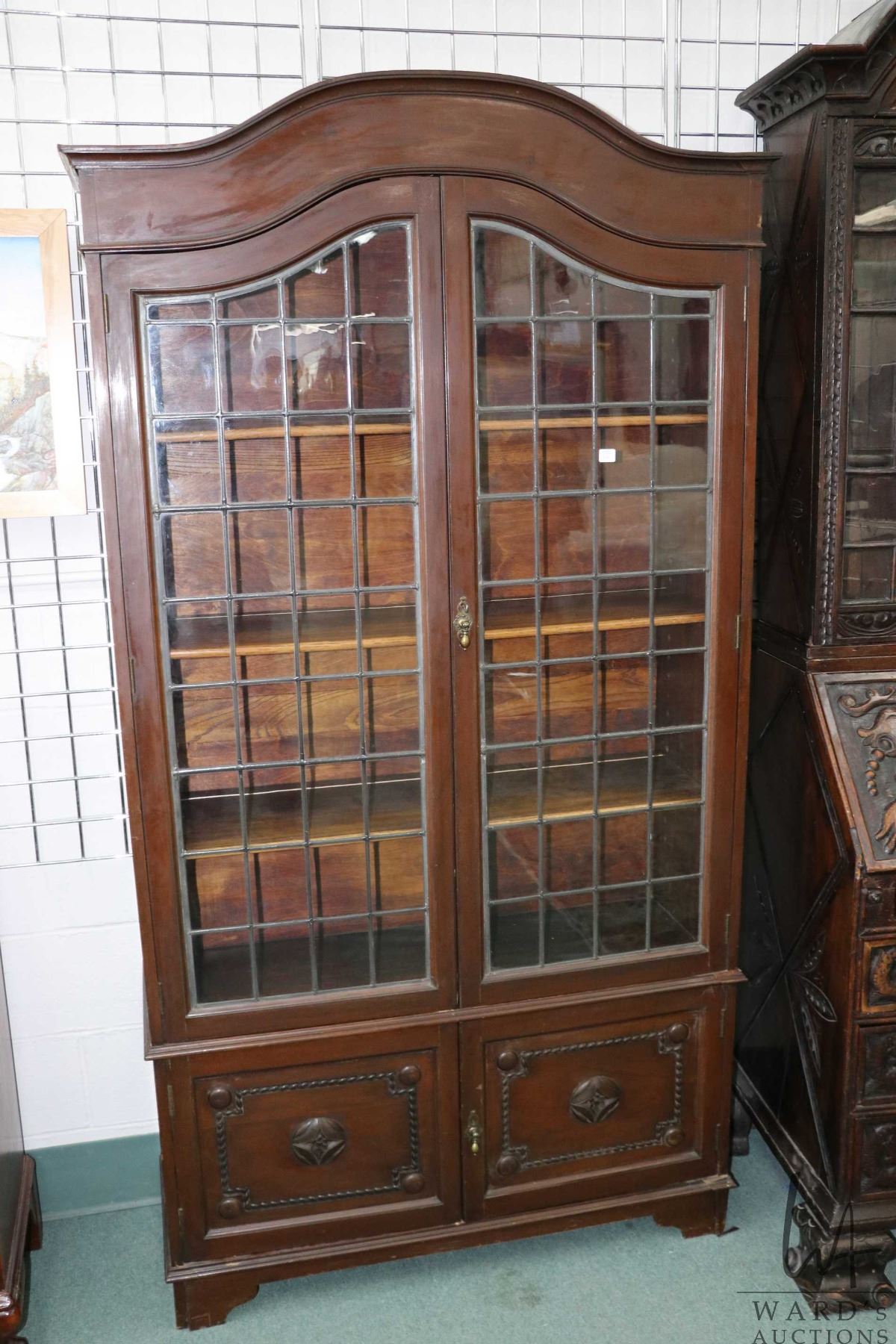 Antique domed top book cabinet with raised panel doors below and two glazed leaded panel doors 76" H X 40" W X 15 D
