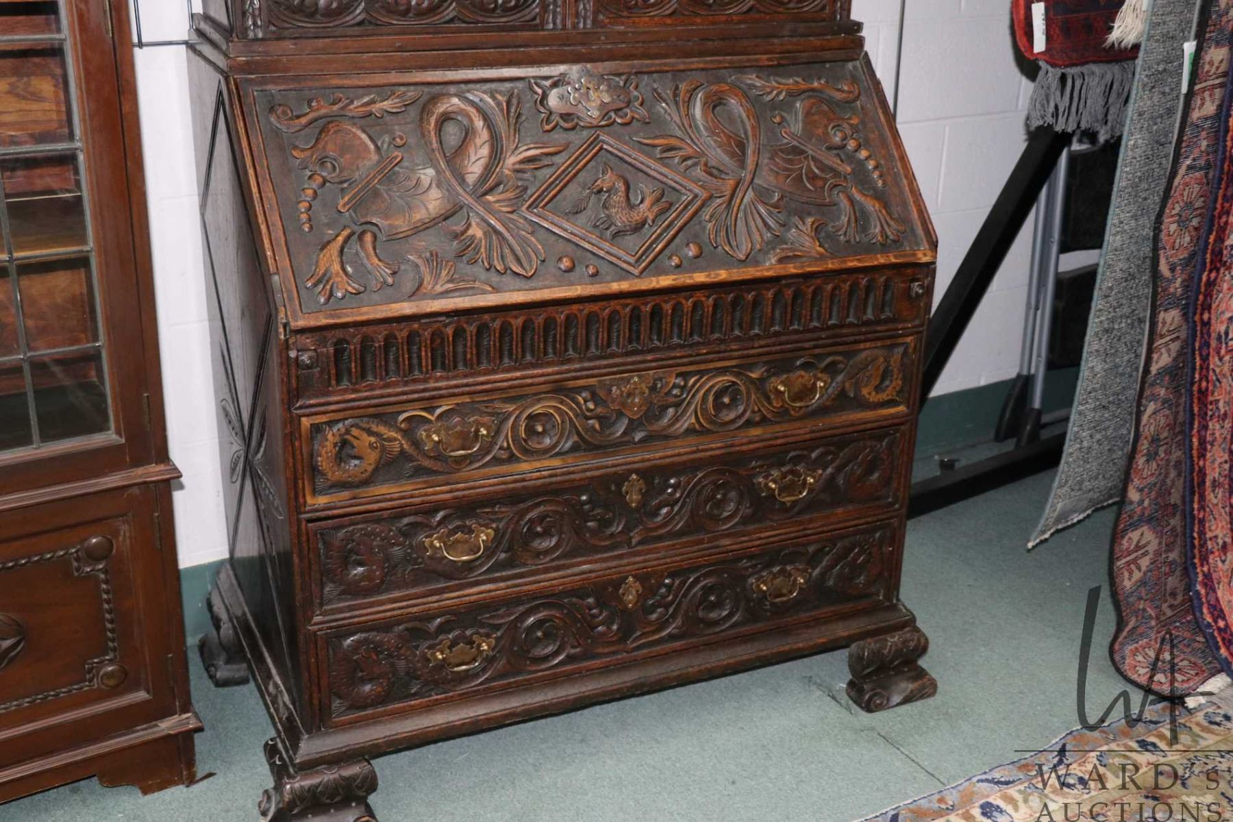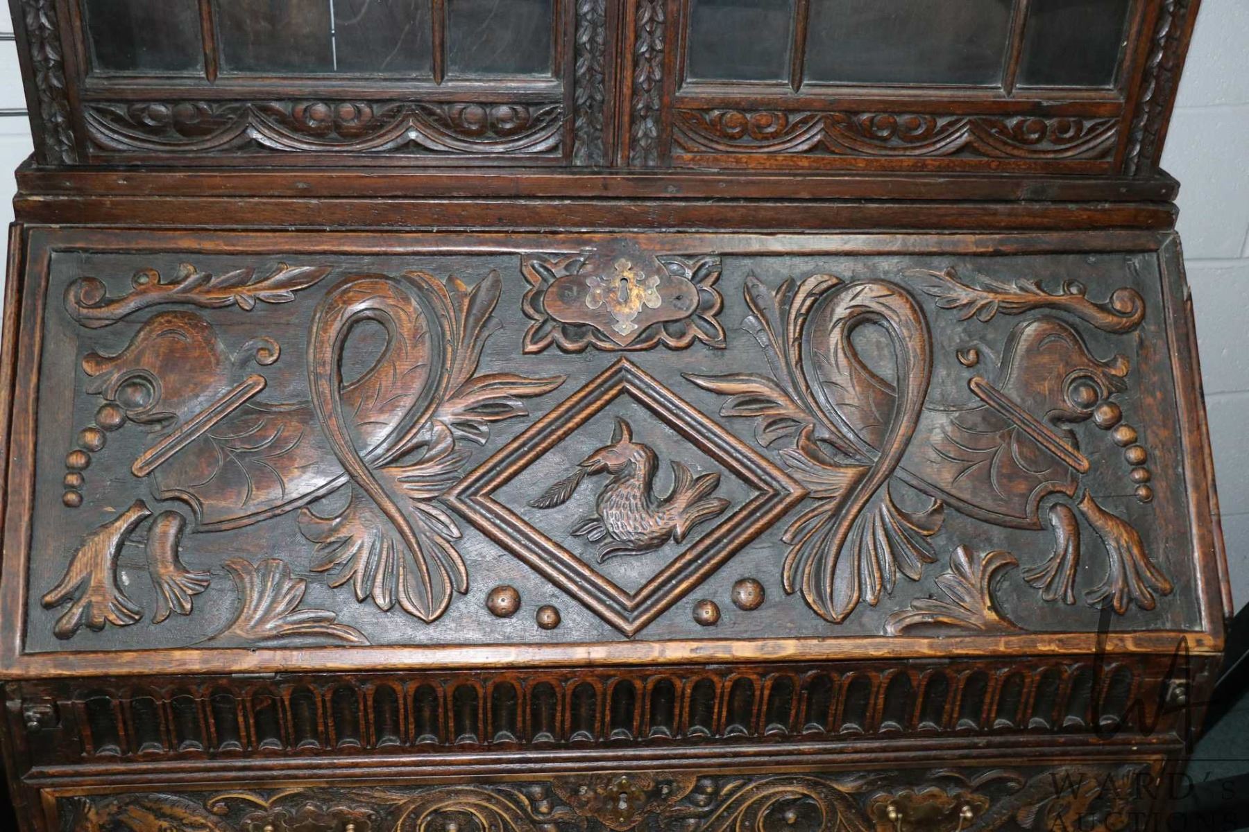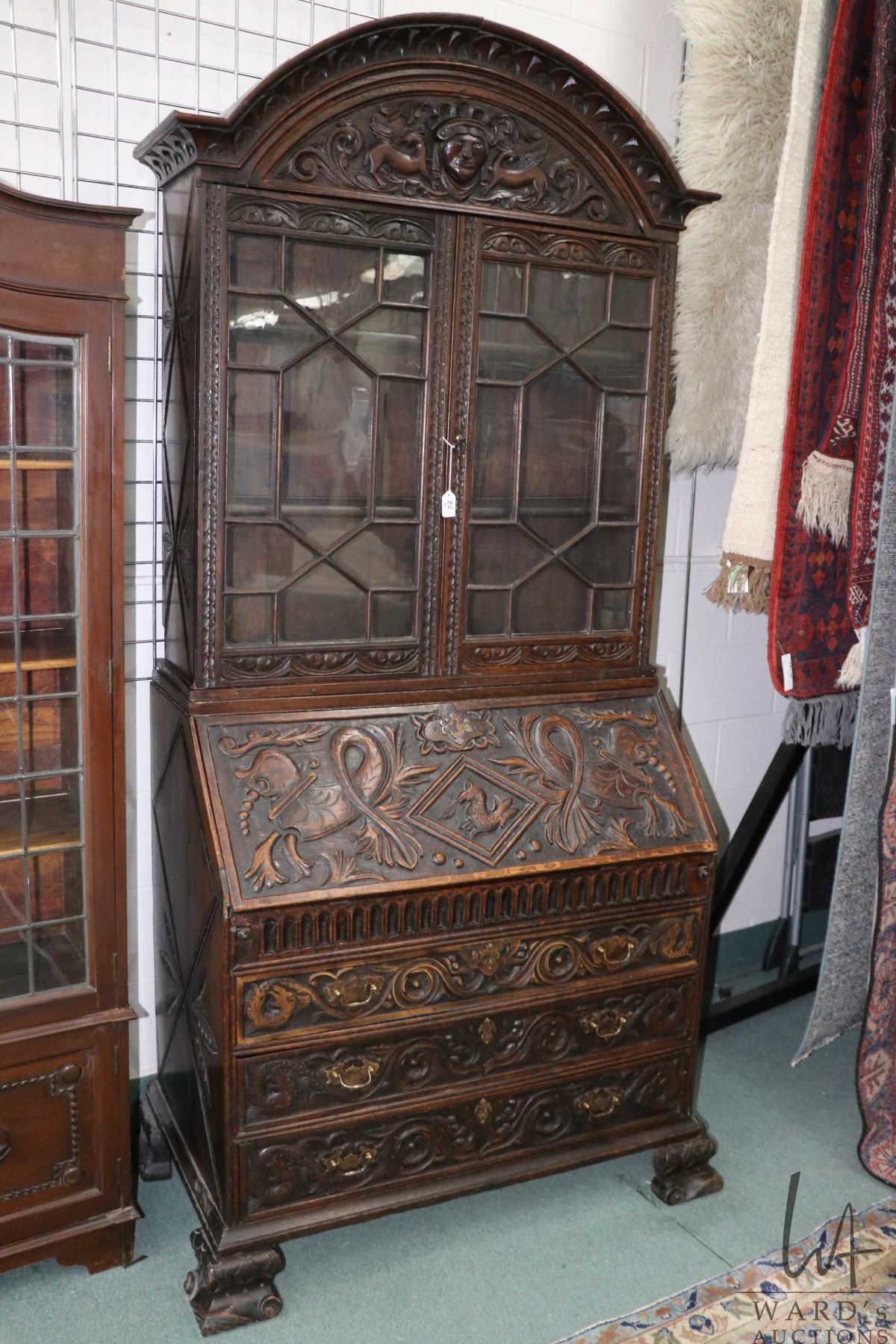 Antique domed top book cabinet with raised panel doors below and two glazed leaded panel doors 76" H X 40" W X 15 D