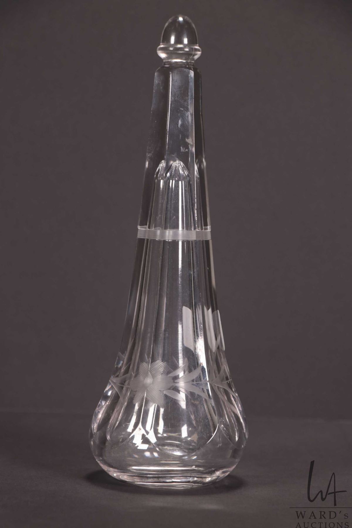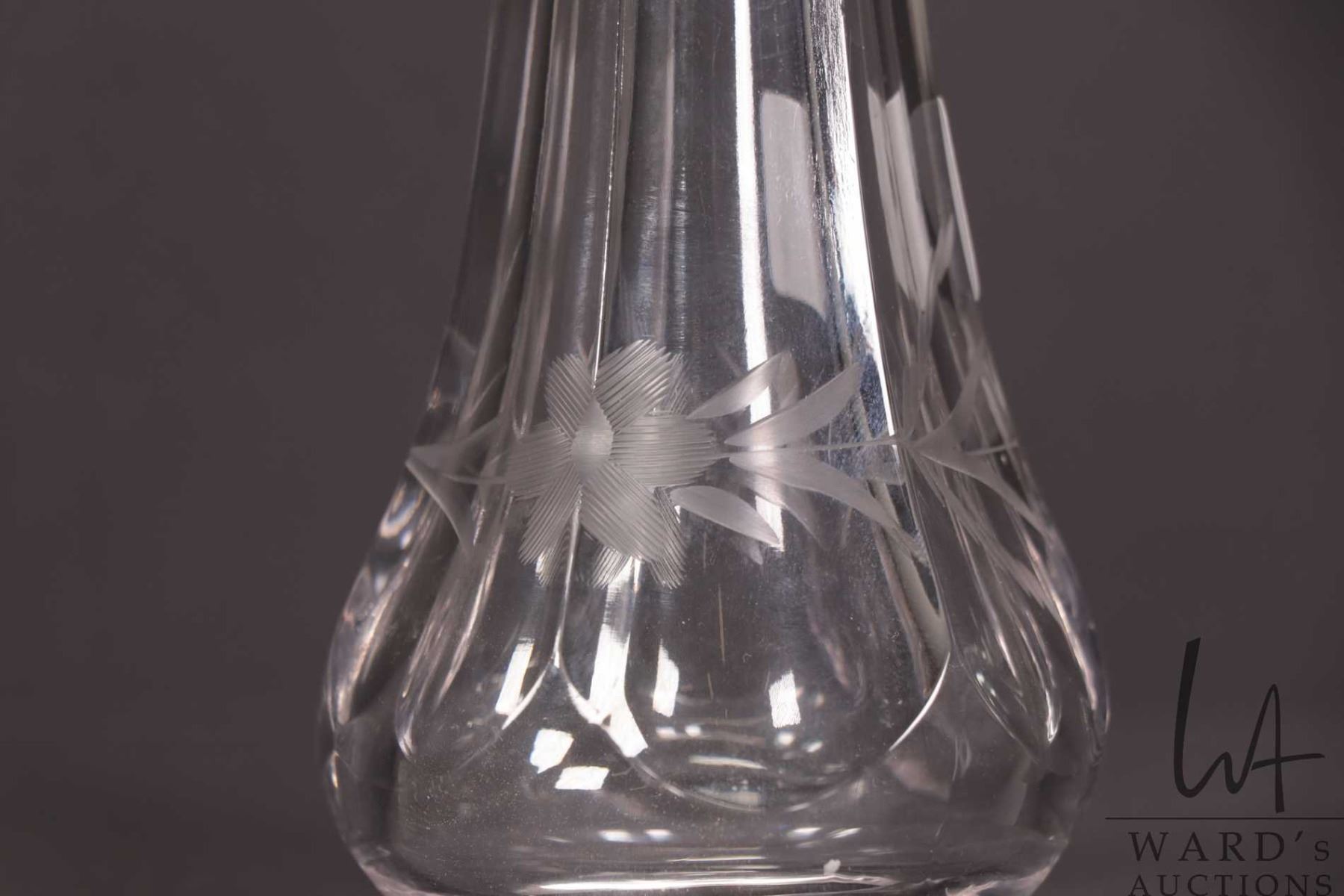 Antique etched crystal automobile posey holder for a Model M or T hearse.