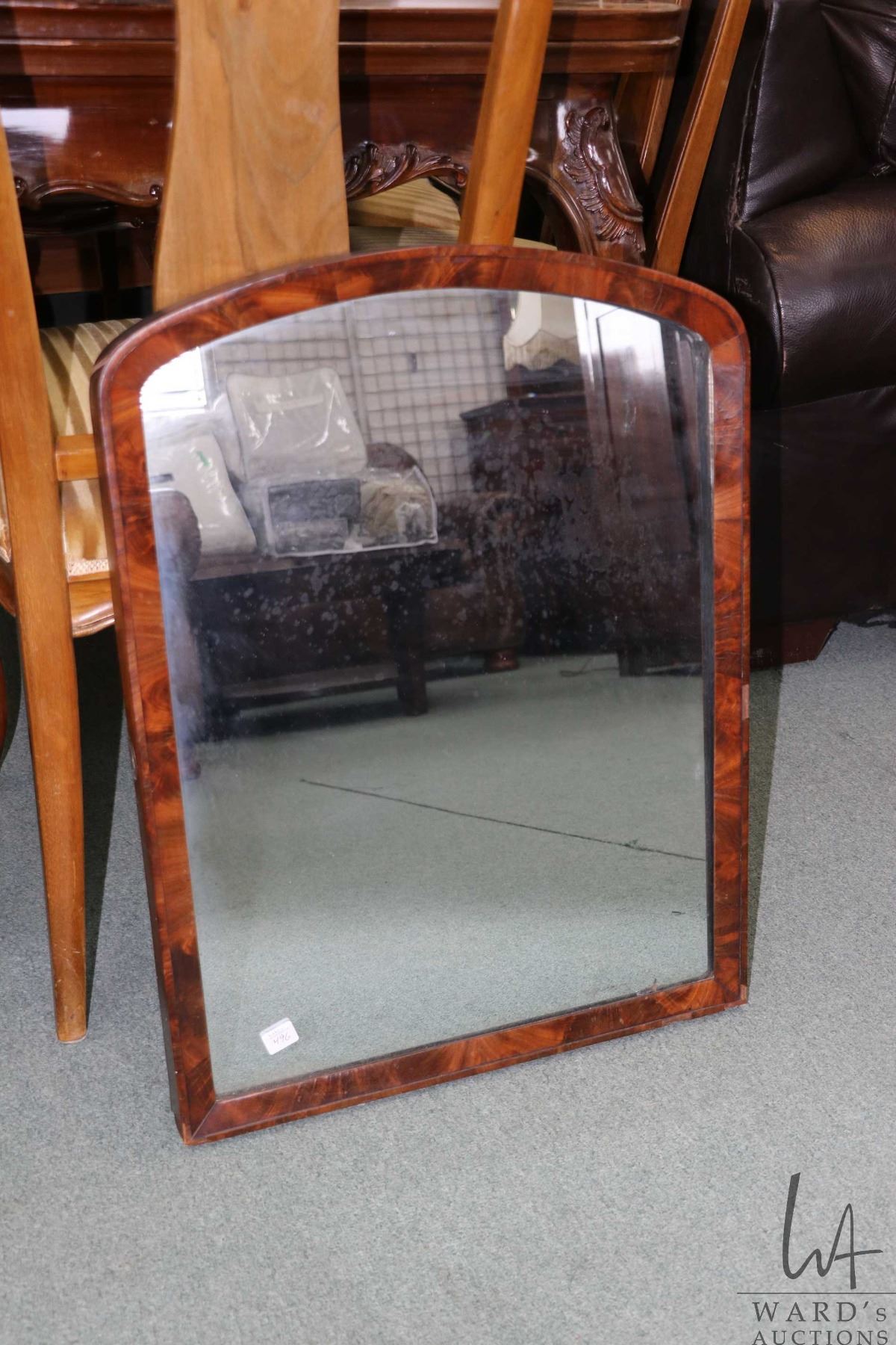 Antique flame mahogany framed mirror Note: used to be attached to a piece of furniture, 26" X 20"