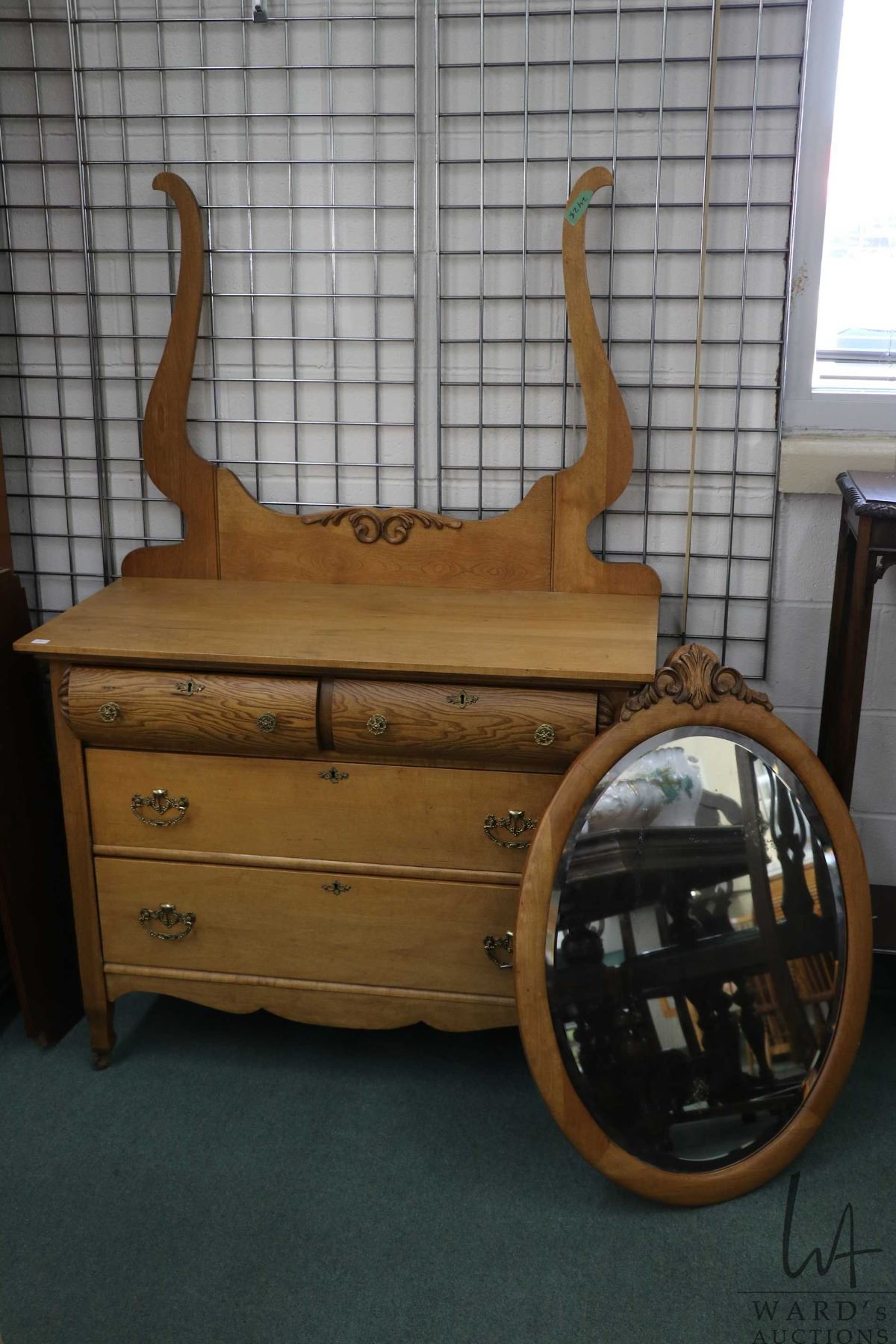 Antique four drawer maple dresser with beveled mirror, 32" H X 40" W X 20" D