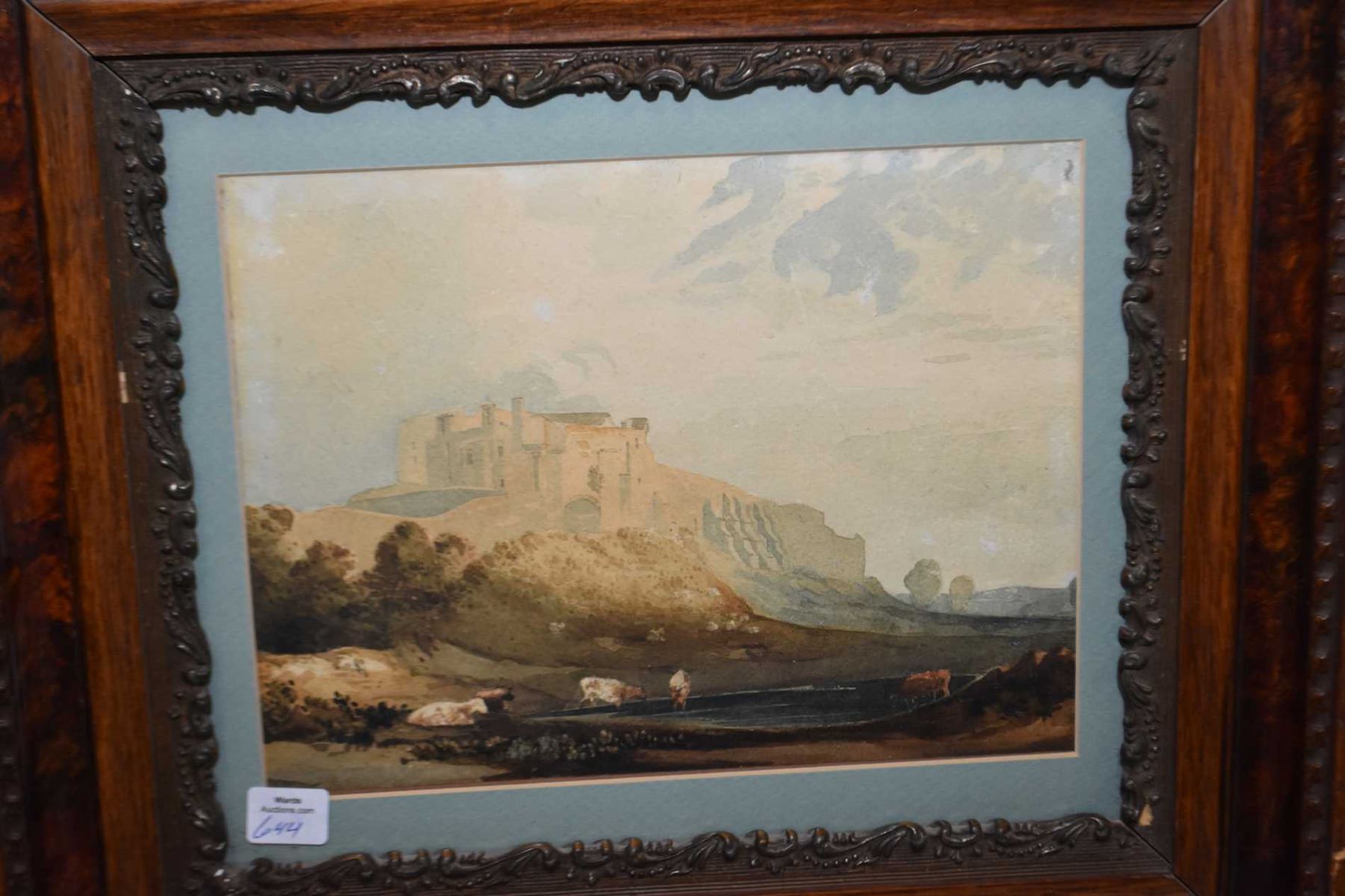 Antique framed original watercolour on mounted paper of a Highland castle, no signature seen, 8" X 10"
