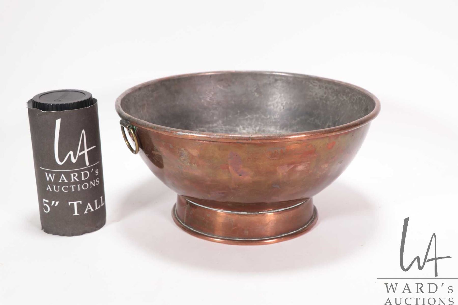 Antique hand hammer copper bowl with applied ring base 10 1/2" in diameter