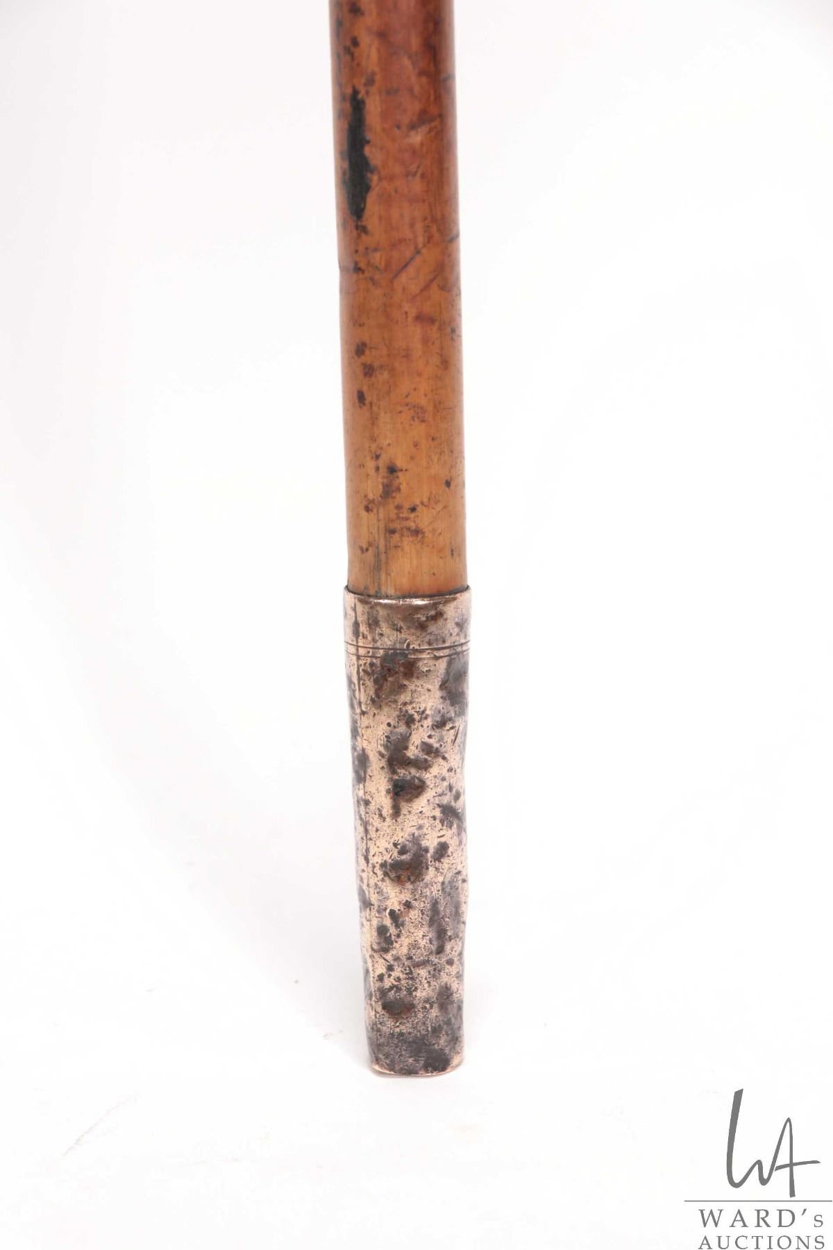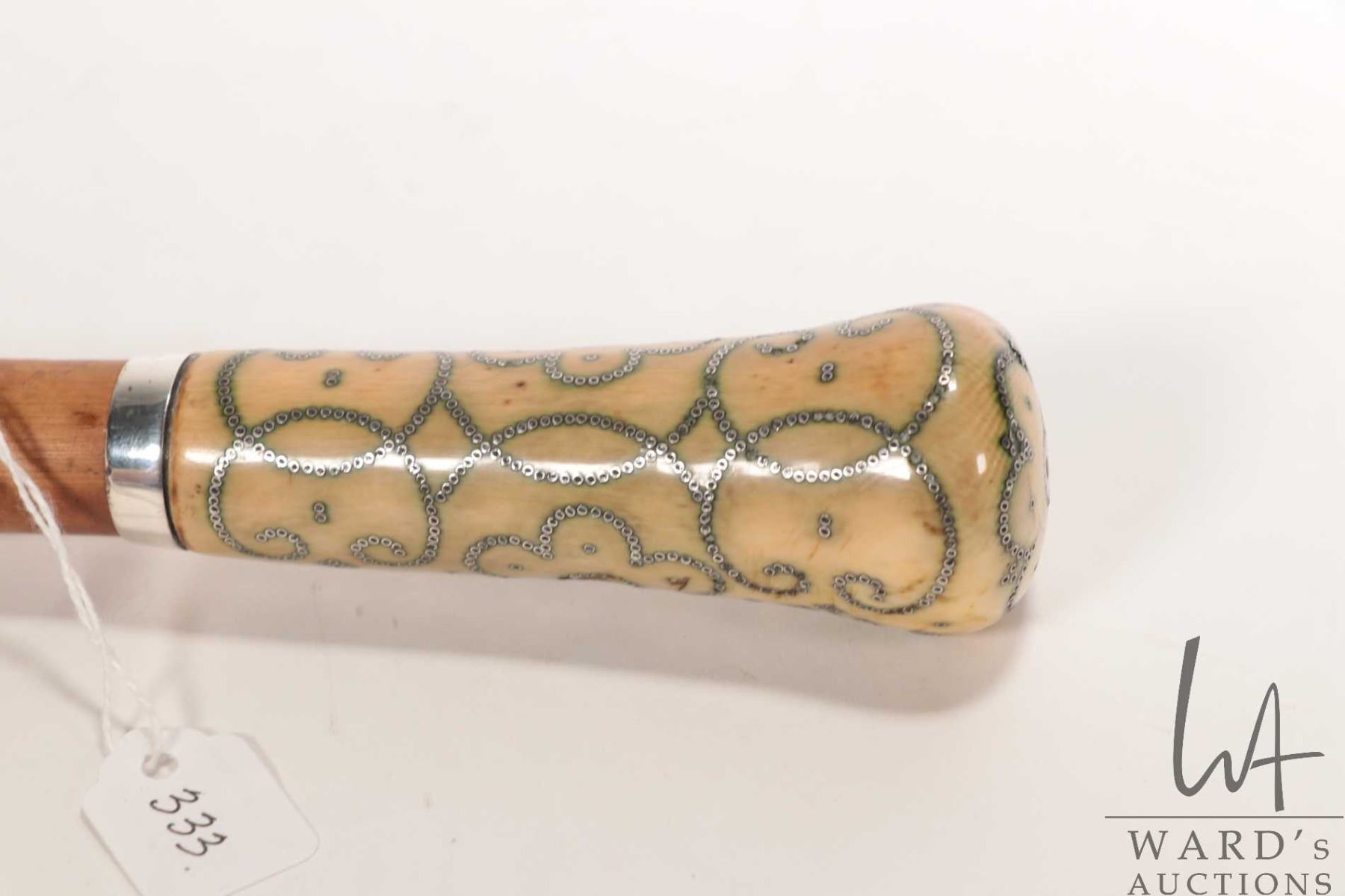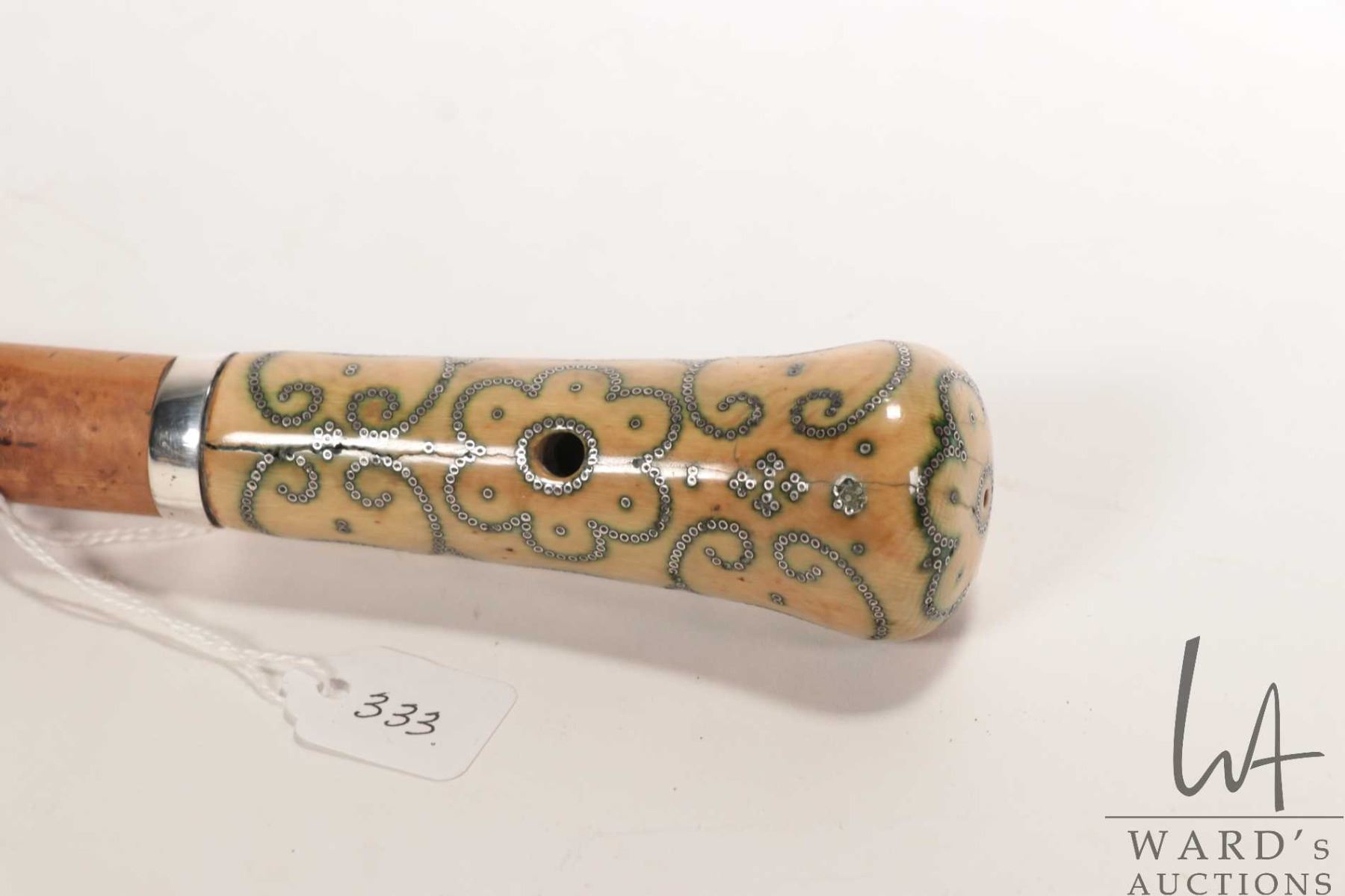 Antique, late 17th/ early 18th century malacca wood walking stick with Elephant Ivory top with inlai
