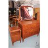 Antique mahogany bedroom suite with six drawer mirrored dresser, side table and double sized headboard, footboard and rails