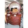 Antique mahogany four drawer dresser with oval beveled mirror, 36" H X 46" W X 24" D, 70" to top of