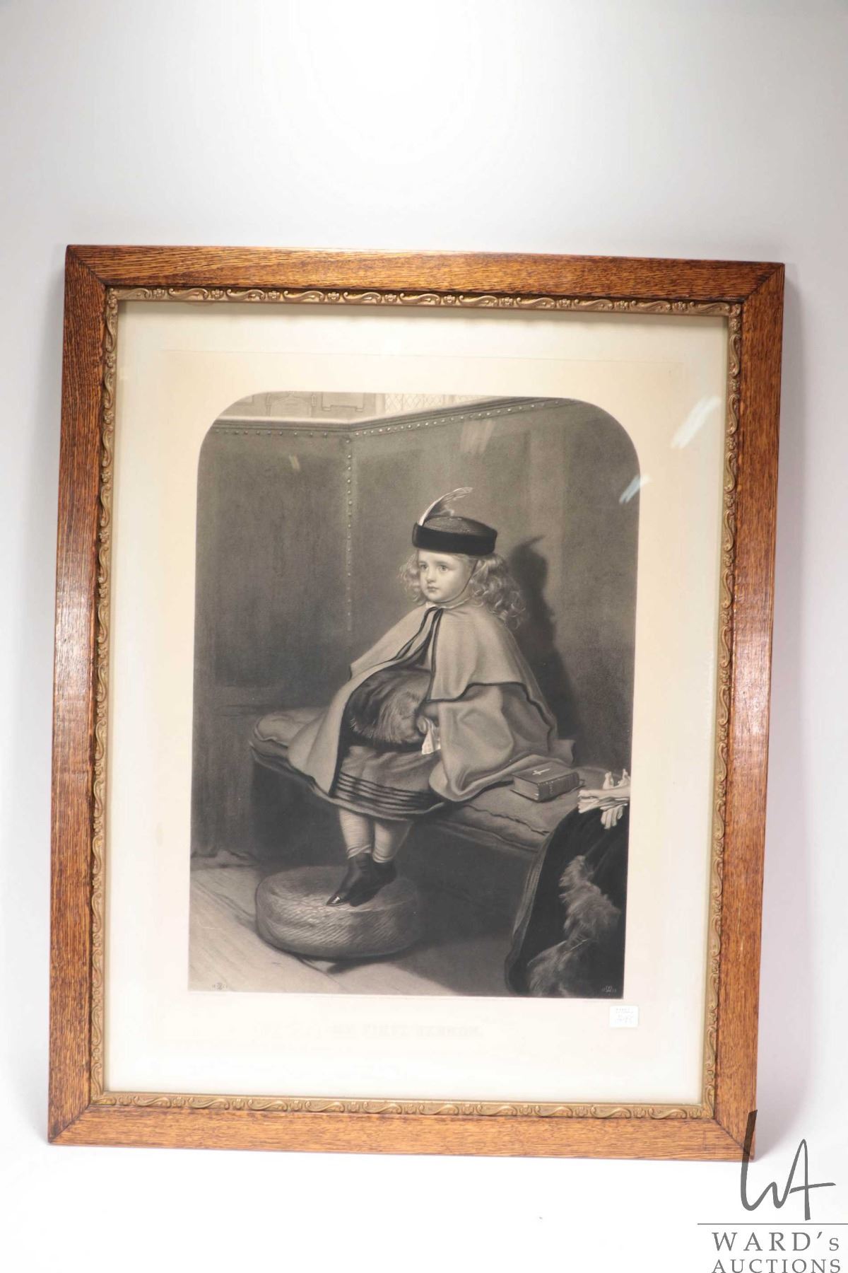 Antique oak framed etched print titled "My First Sermon", outside dimensions including oak frame 32" X 25". NOTE: This is too large to ship through most couriers and will be expensive to ship. Artwork cannot be insured. Local pickup only.
