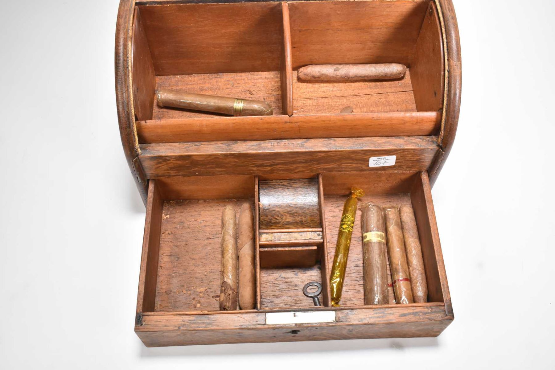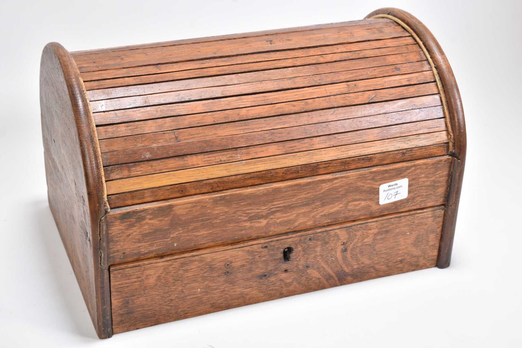 Antique oak roll top single drawer cigar box, needs tlc