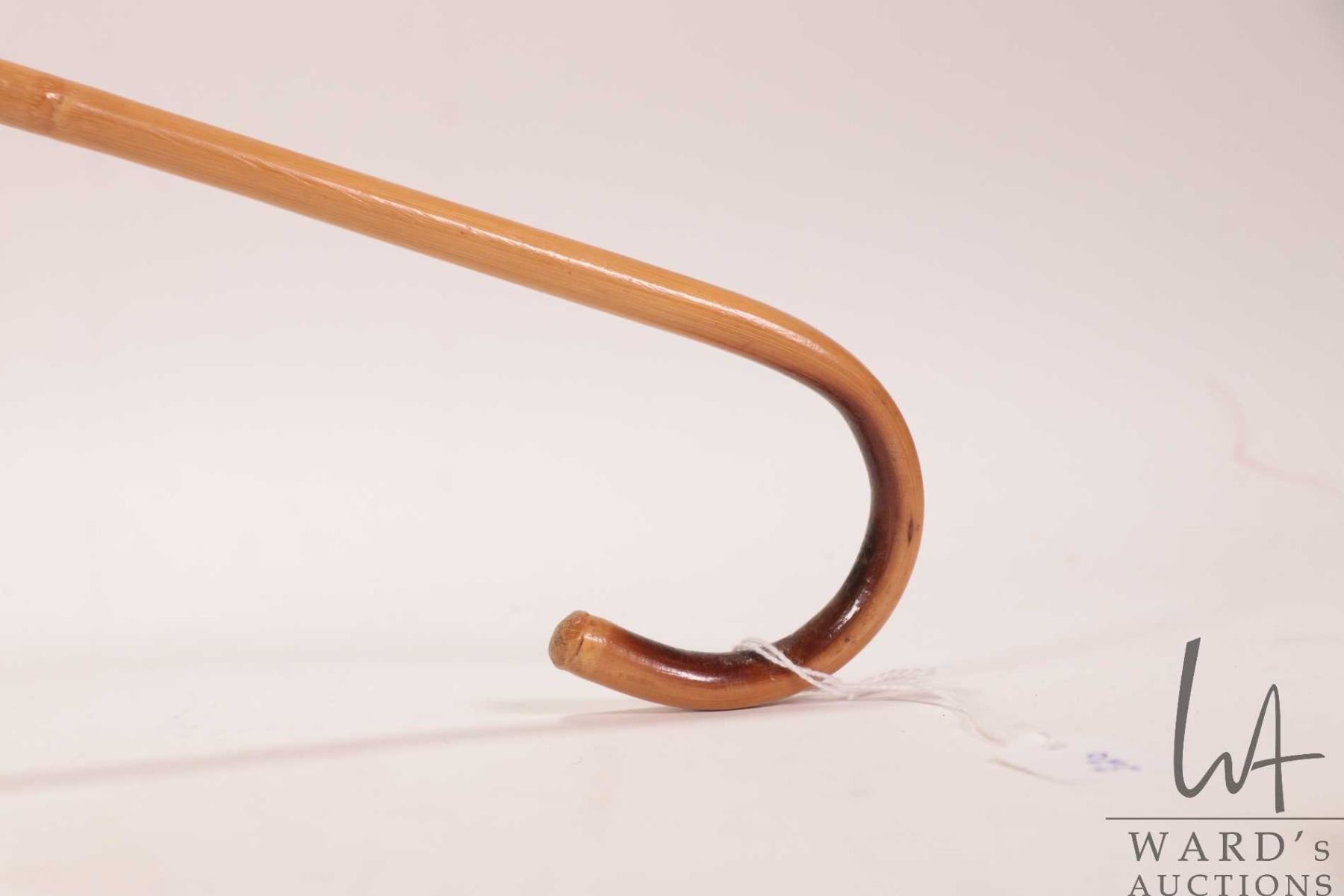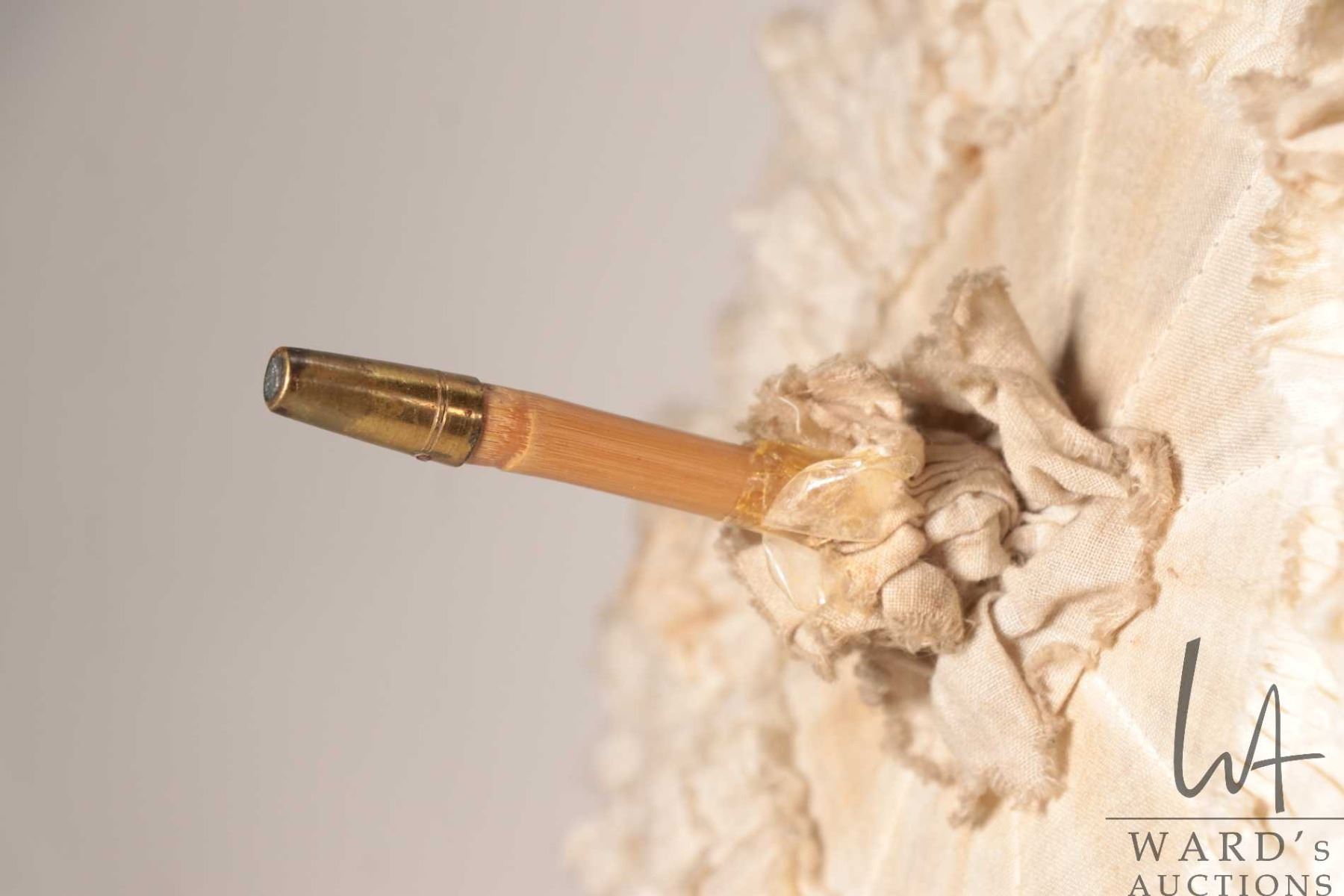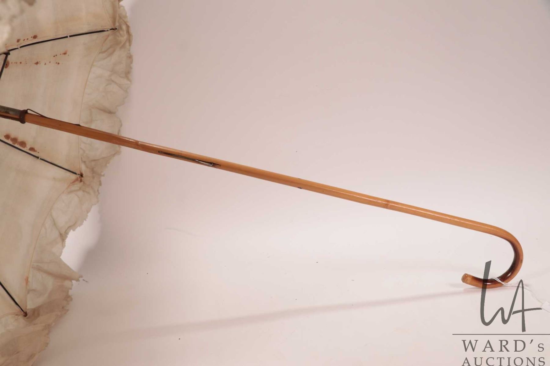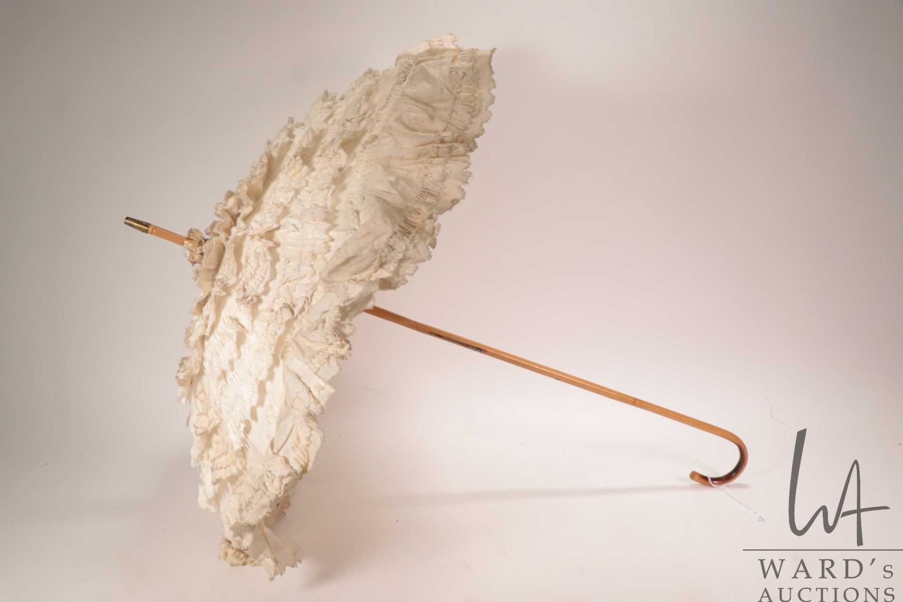 Antique parasol with ruffled cotton cover and bamboo handle 26" in length