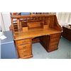 Antique quarter cut oak, double pedestal S curve roll top desk with fitted interior, 60" wide