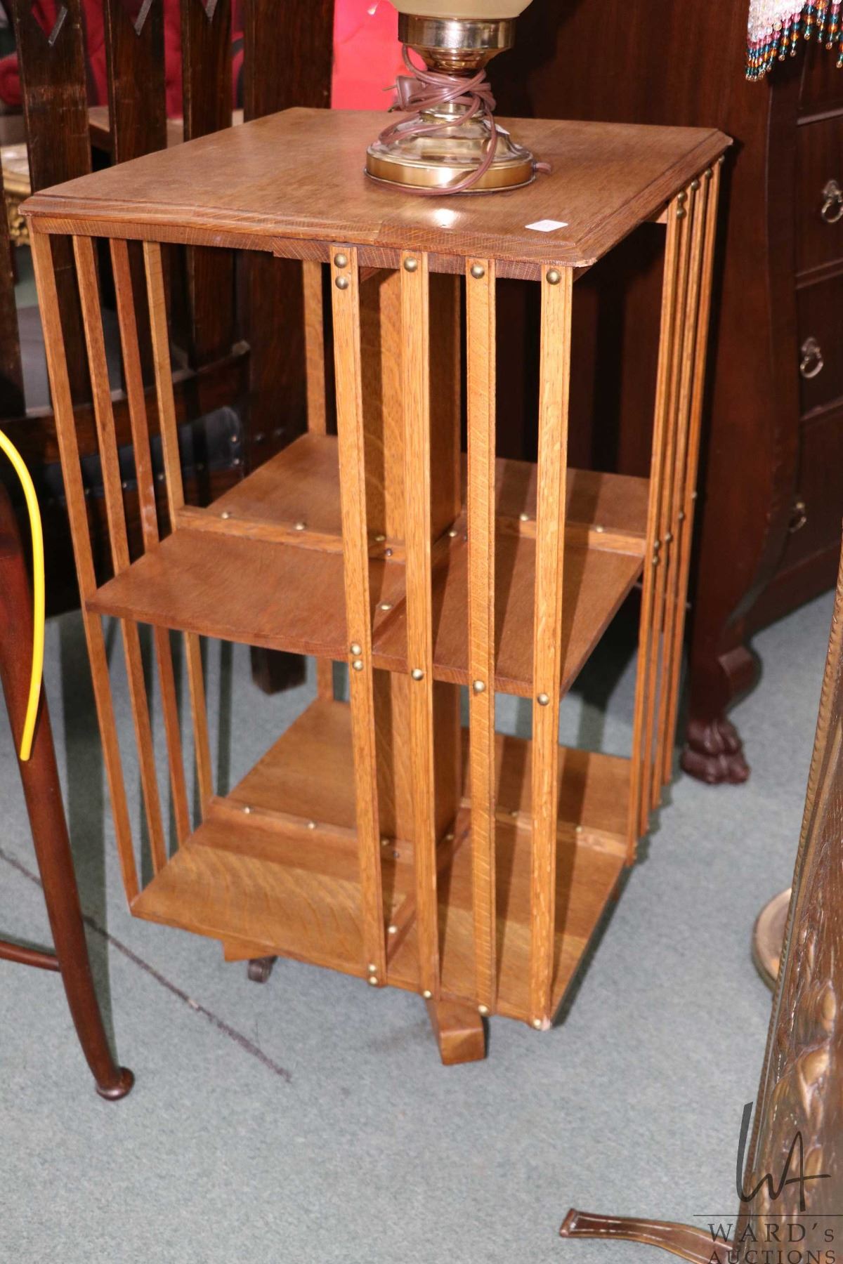 Antique quarter cut oak, rotating Mission style bookcase, 33" H X 18" W