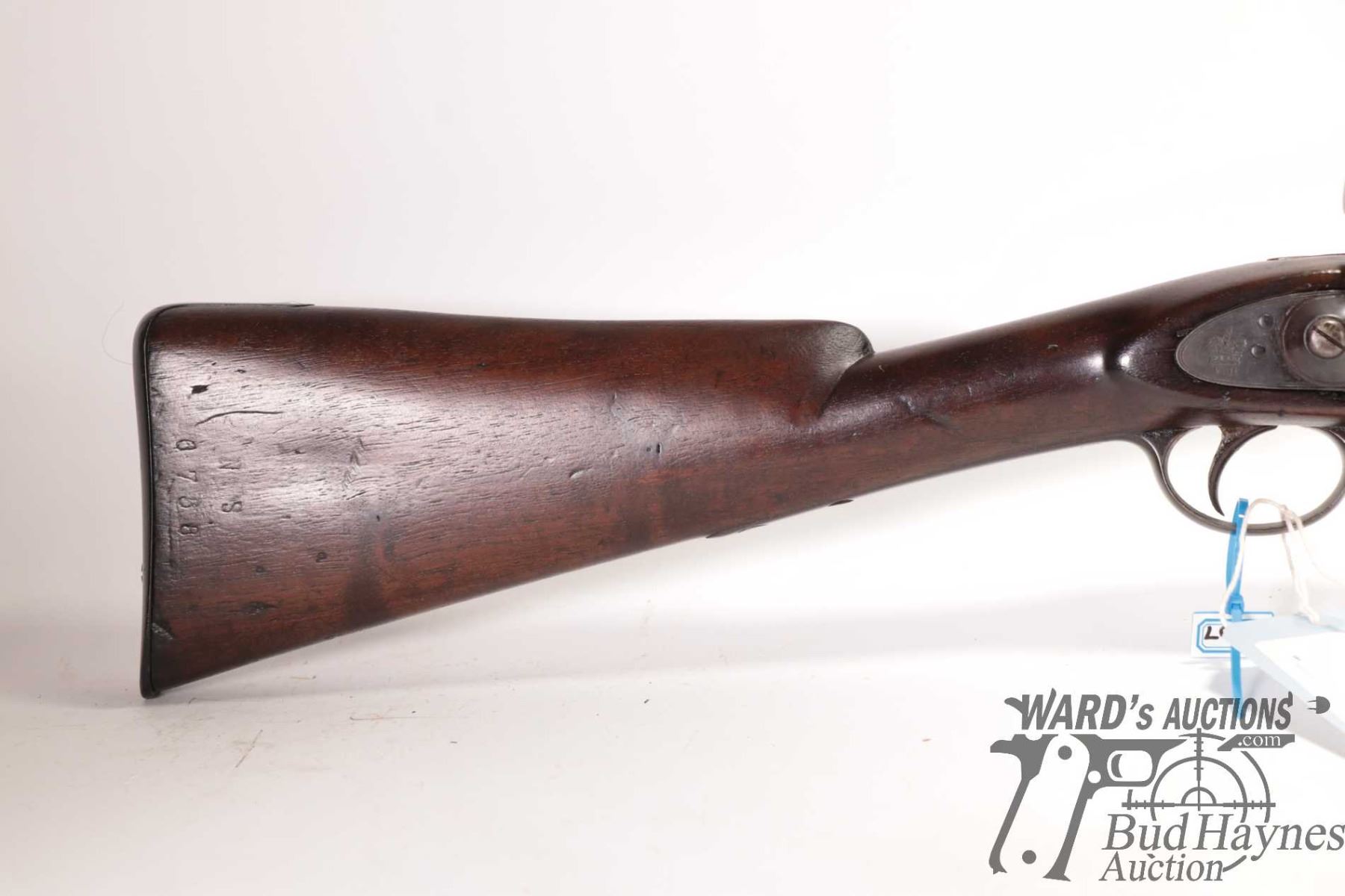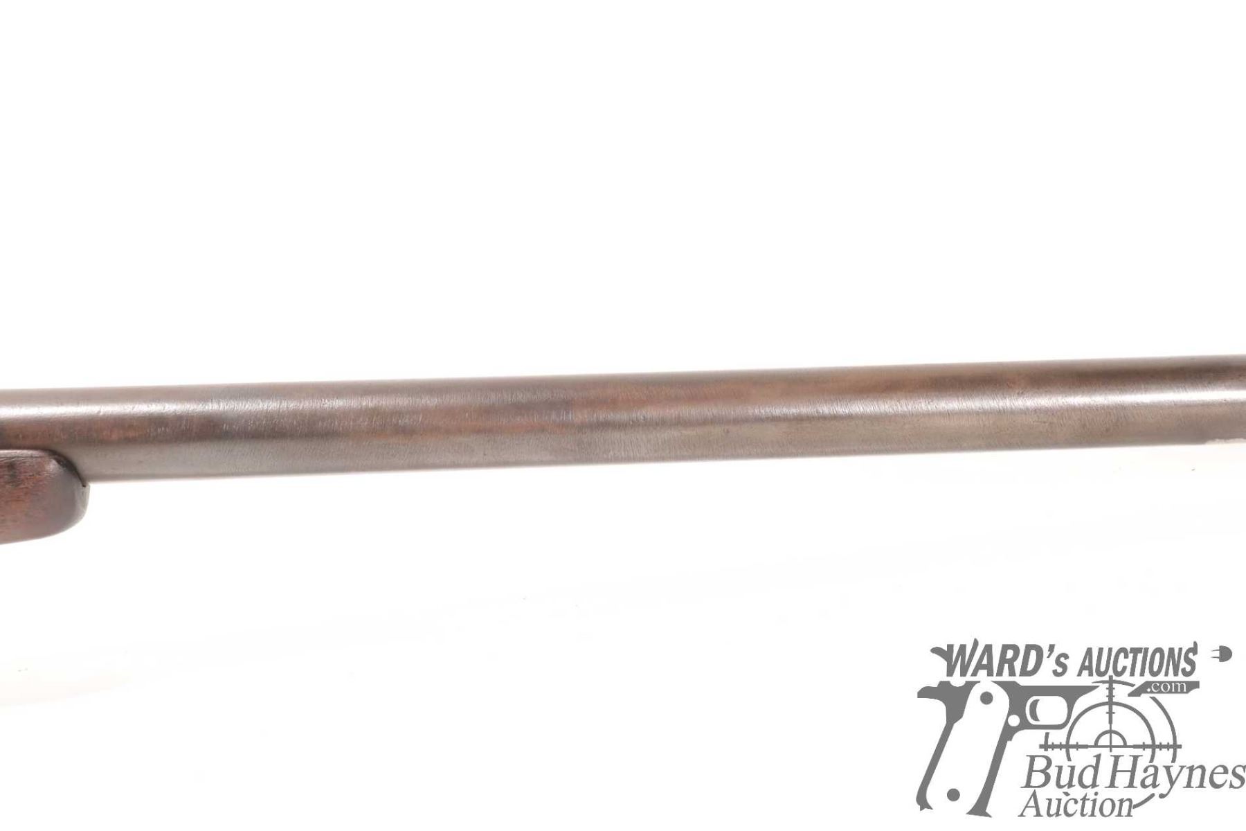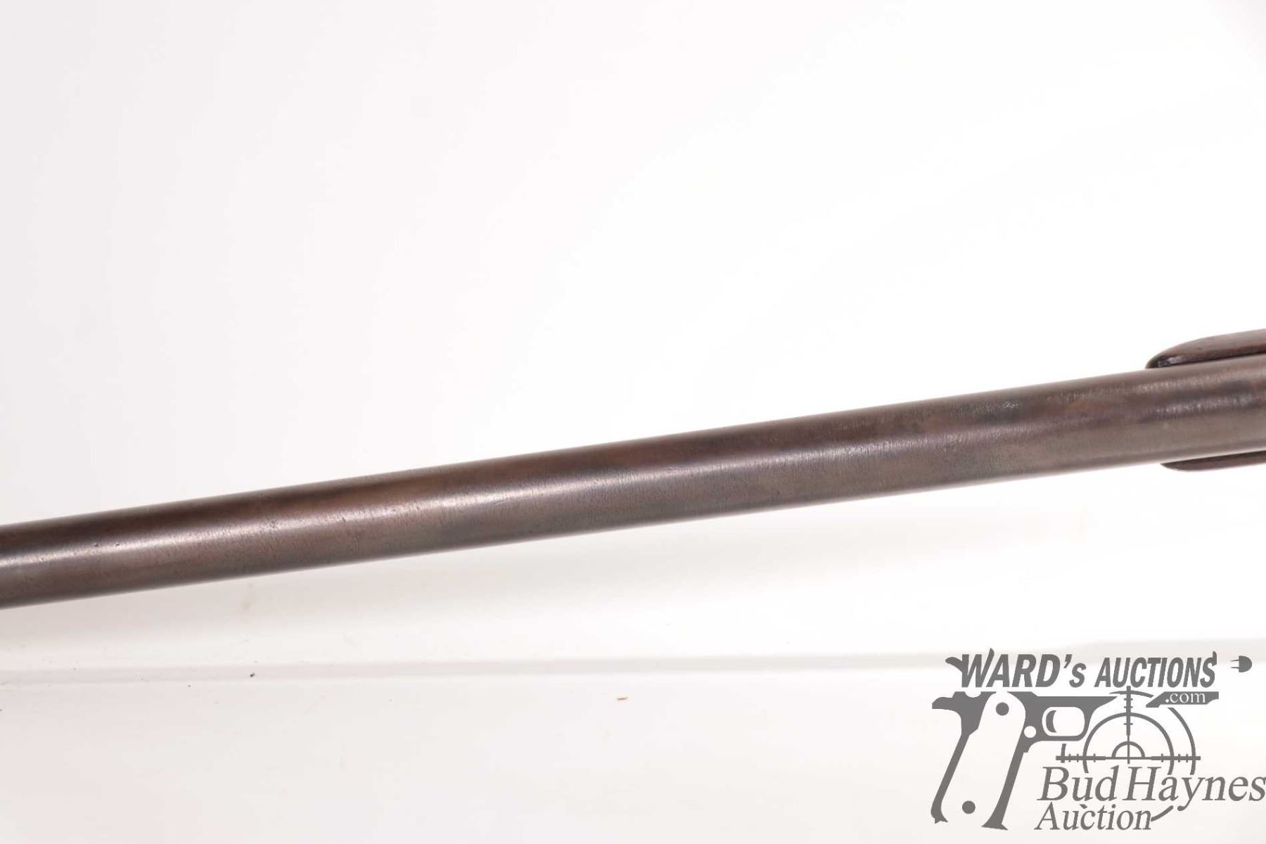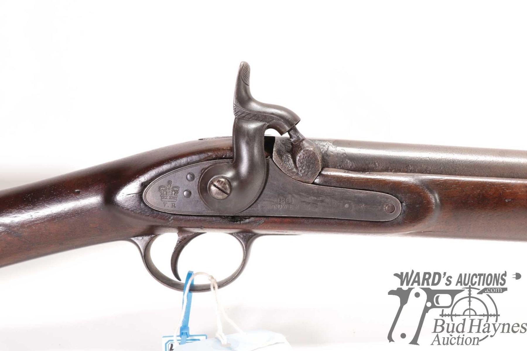 Antique rifle Enfield model Tower Rifle, .577 ( meas. .593 muzzle) Single shot Muzzle loading, w/ bbl length 32" [Blued finish. Fixed sights. Sporterized stock with metal butt plate. Marked "1861 TOWER" on lock plate. Hammer and trigger function. Metal has been re-blued with pitting under finish. Stock has been refinished with nicks and dings and other use, handling and storage marks.] serial # NIL, No PAL required