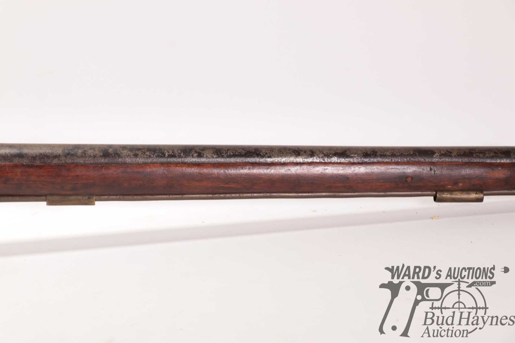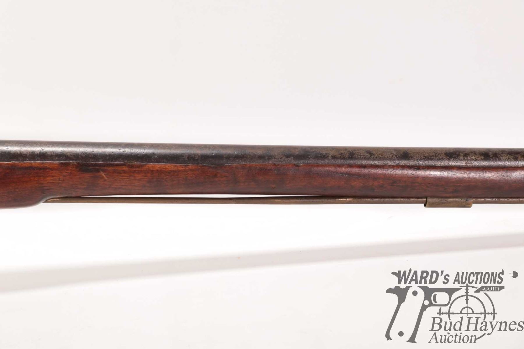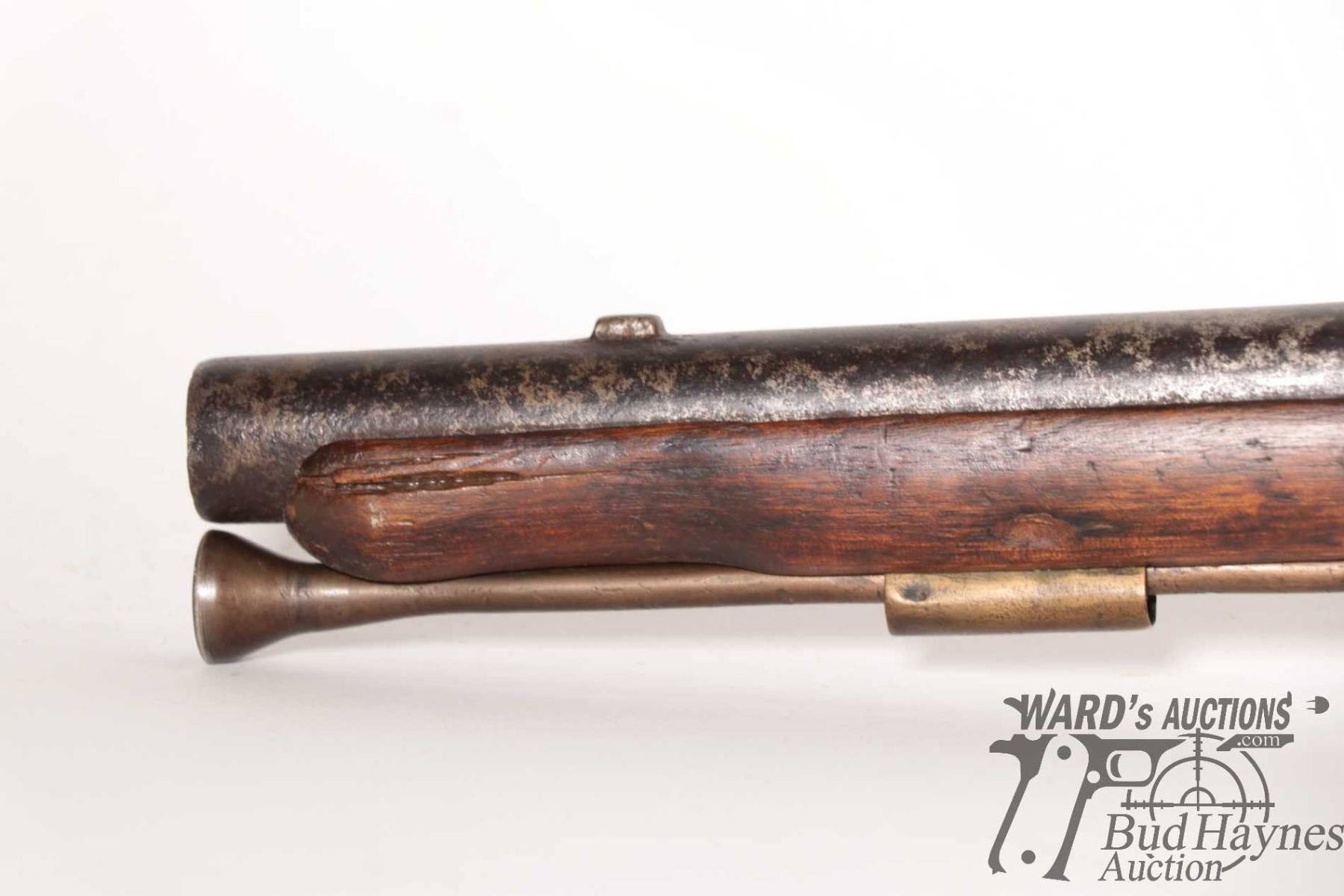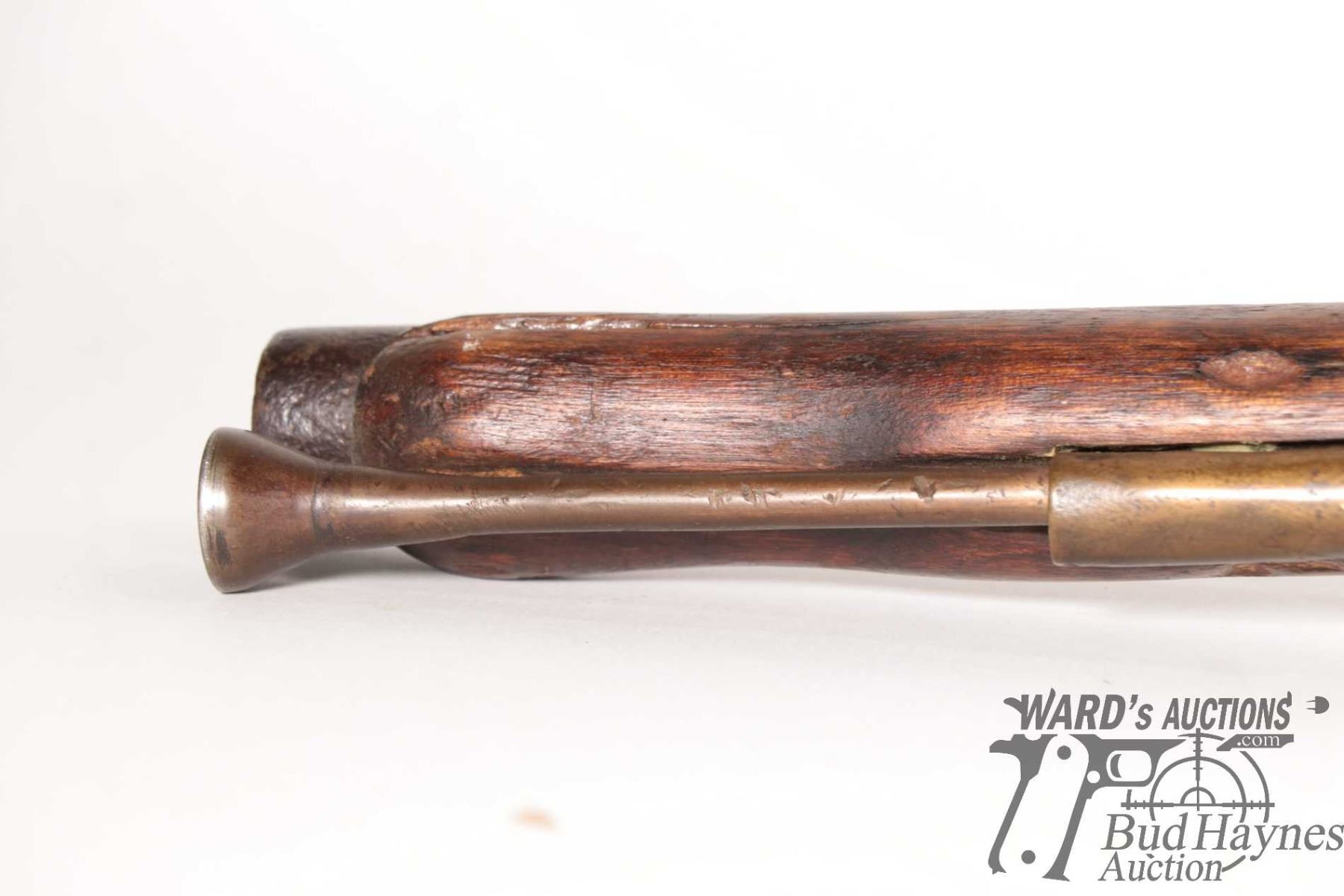 Antique rifle Tower model Brown Bess Musket, .75 Flintlock Single shot Muzzle loading, w/ bbl length 38" [Blued barrel with fixed front and no rear sight. Includes ramrod. Full length smooth barrel with brass butt plate. Markings include "Tower" and "GR" crown on lock plate etc. Action and trigger function albeit a bit stiff. Bluing worn in use and handling areas with some rust and pitting. Nicks, dings and cracks in stock plus other use, handling and storage marks.] serial # NIL, No PAL required