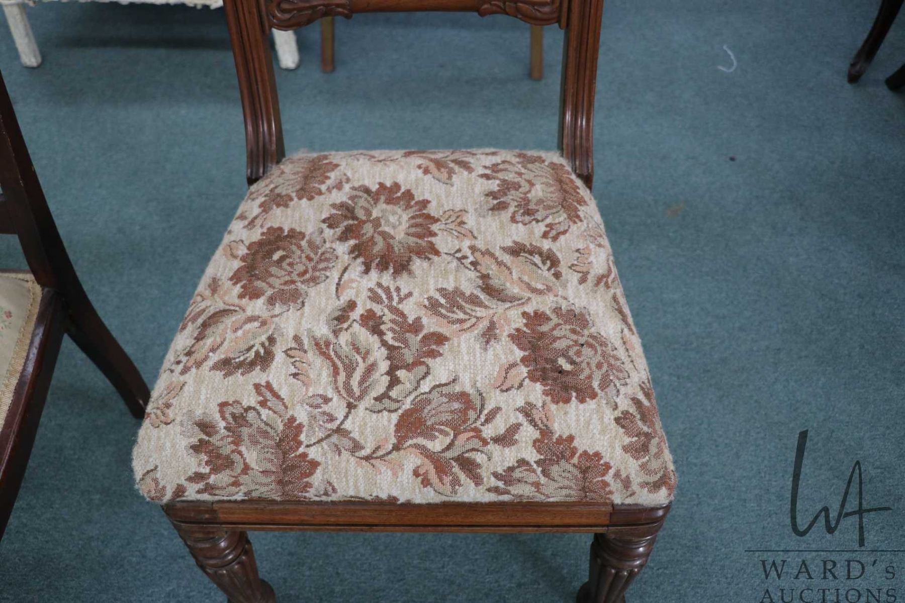 Antique side chair with reeded supports and upholstered seat