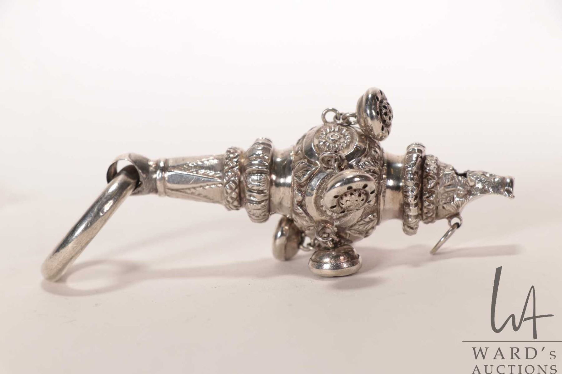Antique silver bells and whistle baby toy