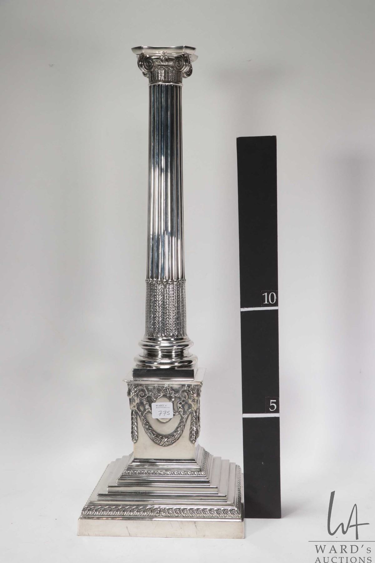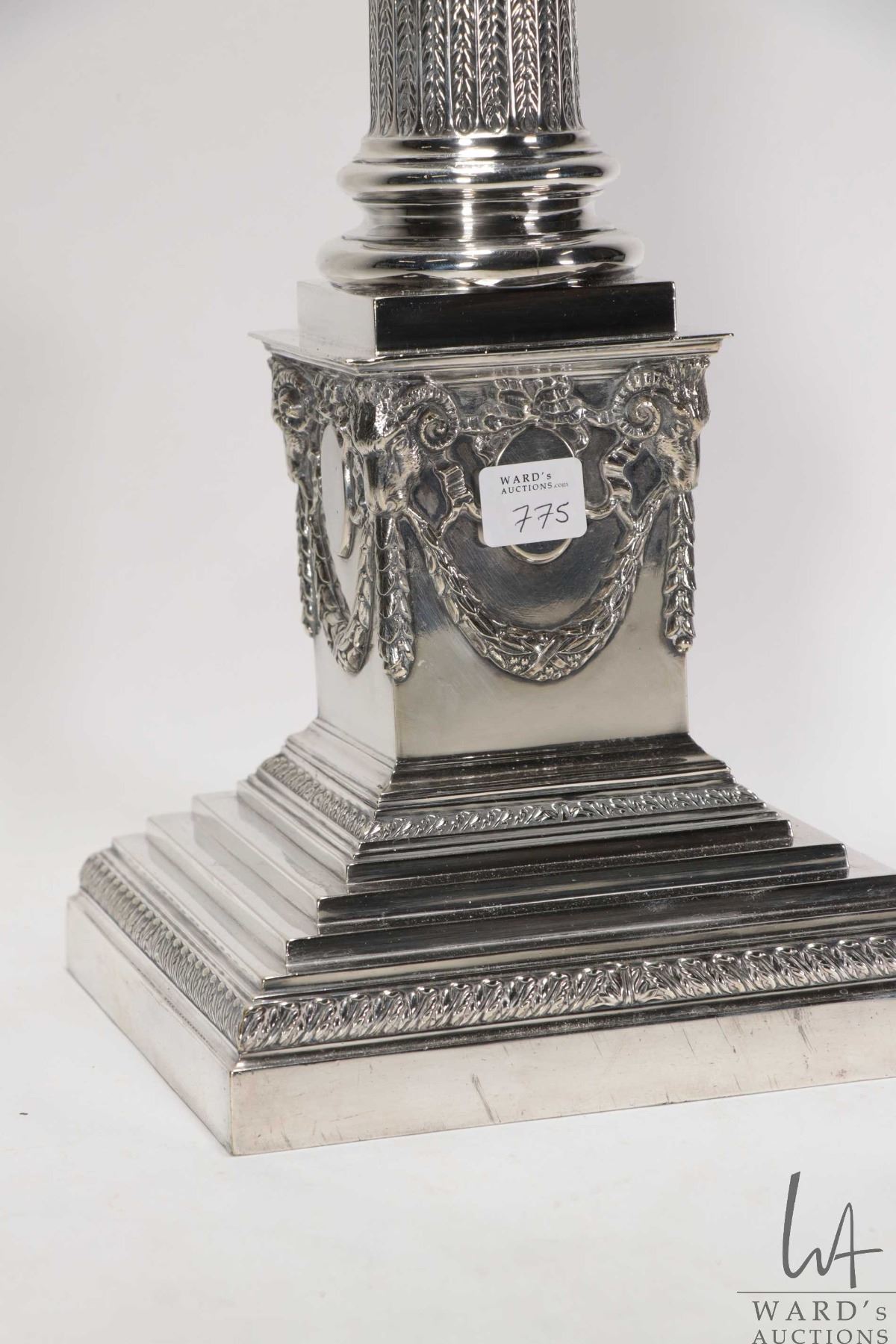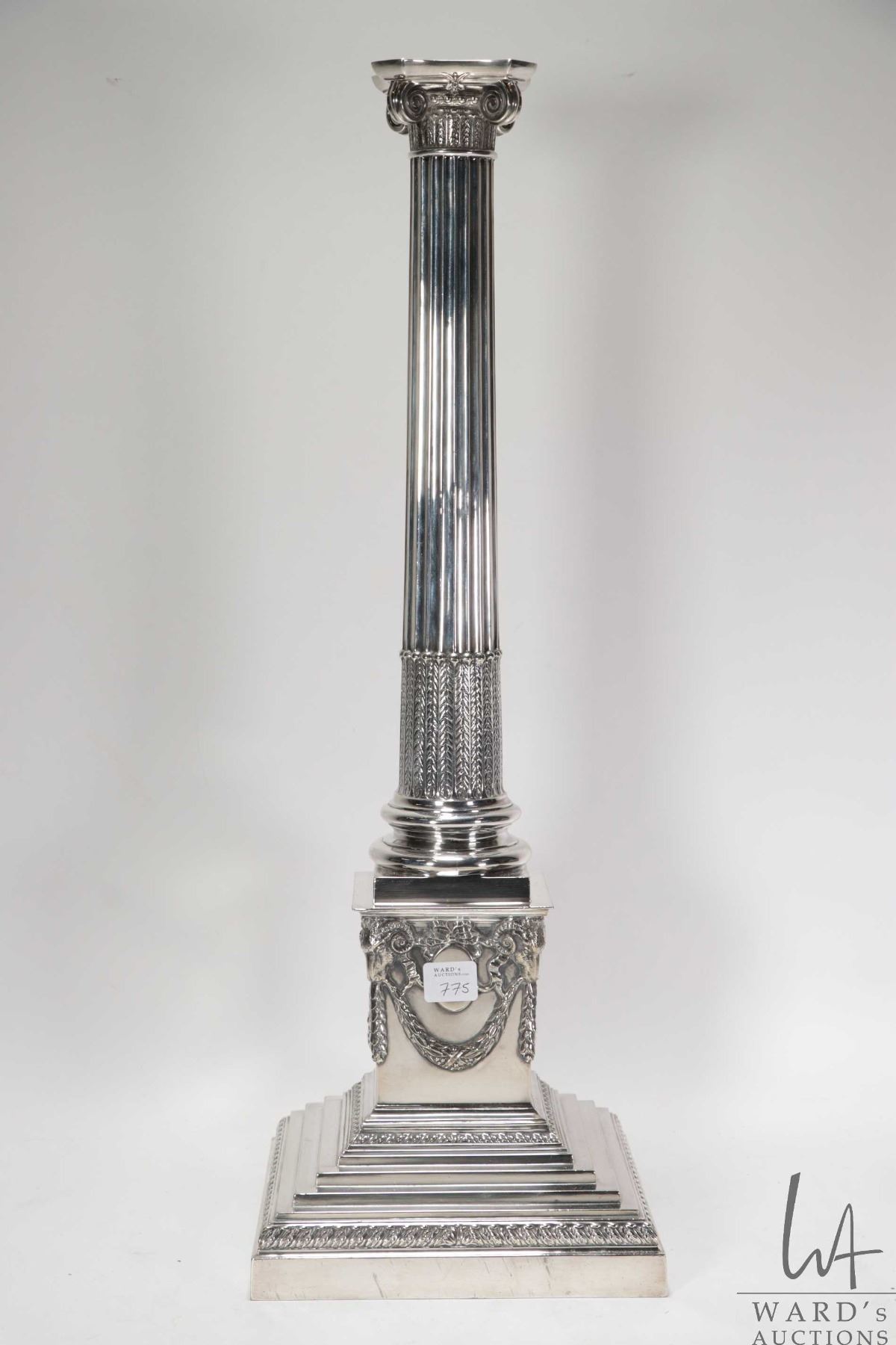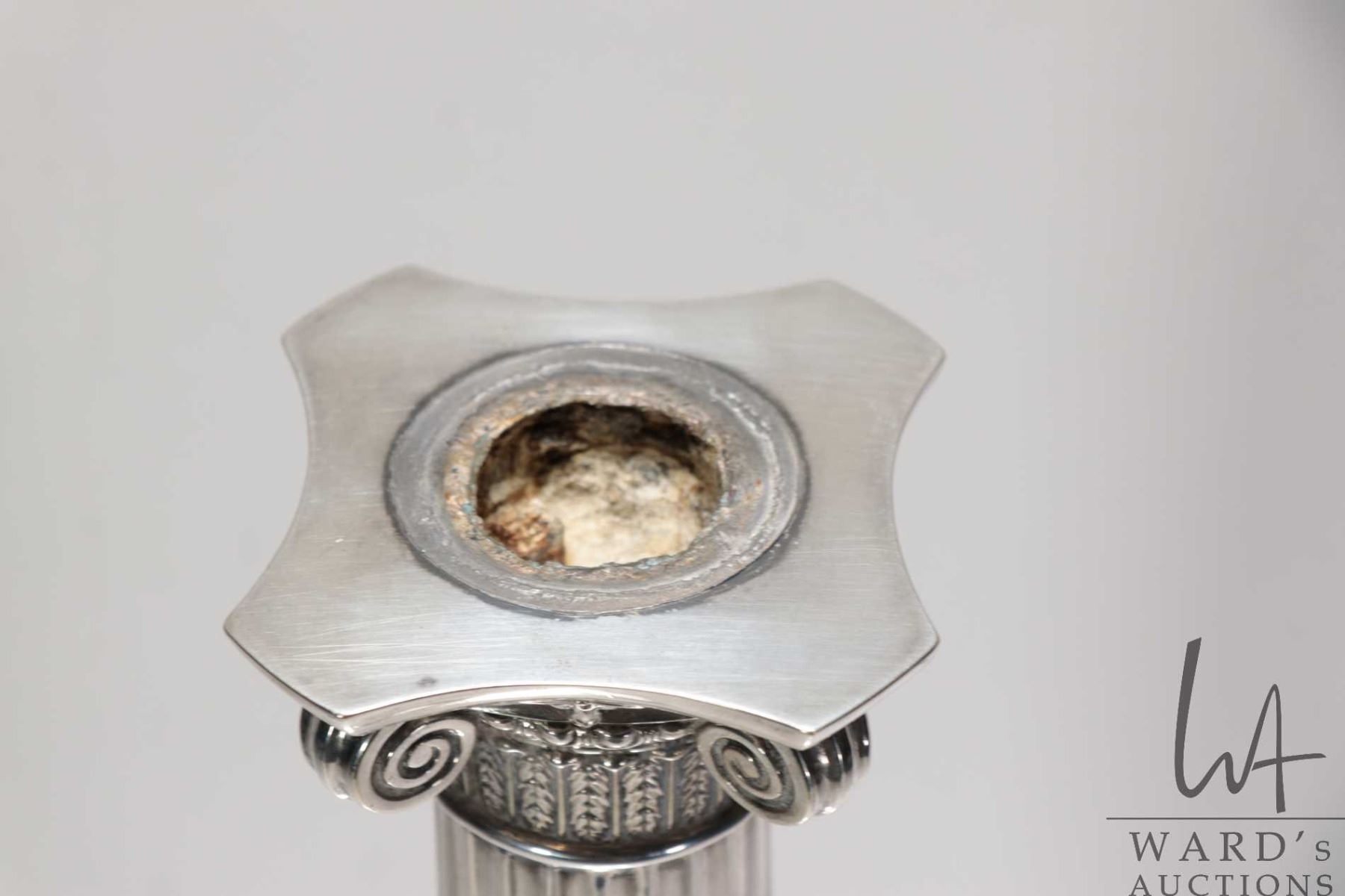 Antique silverplate Corinthian column table lamp base 22"