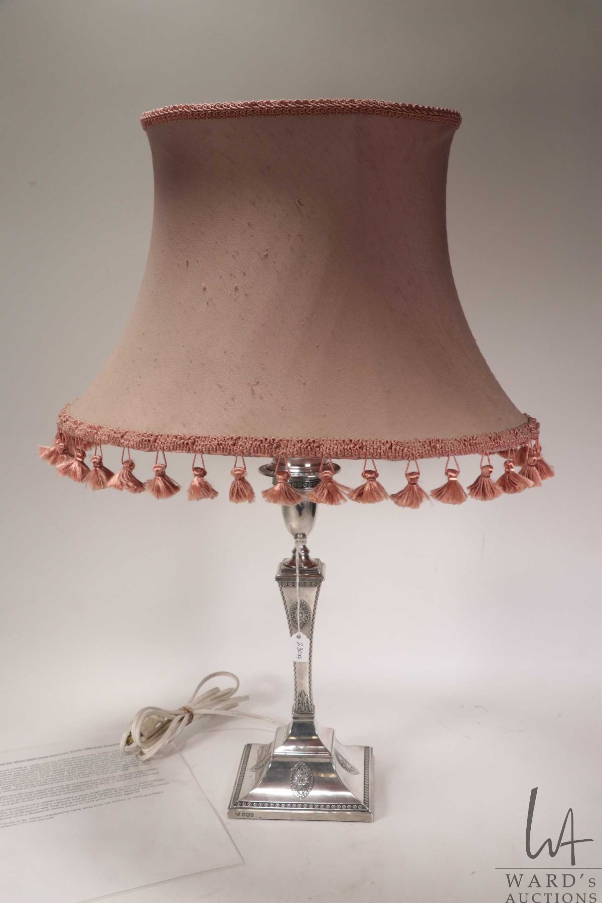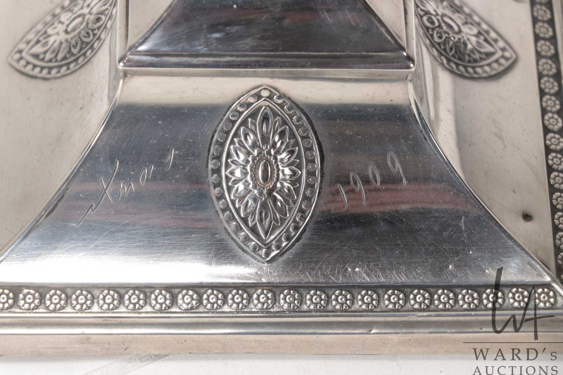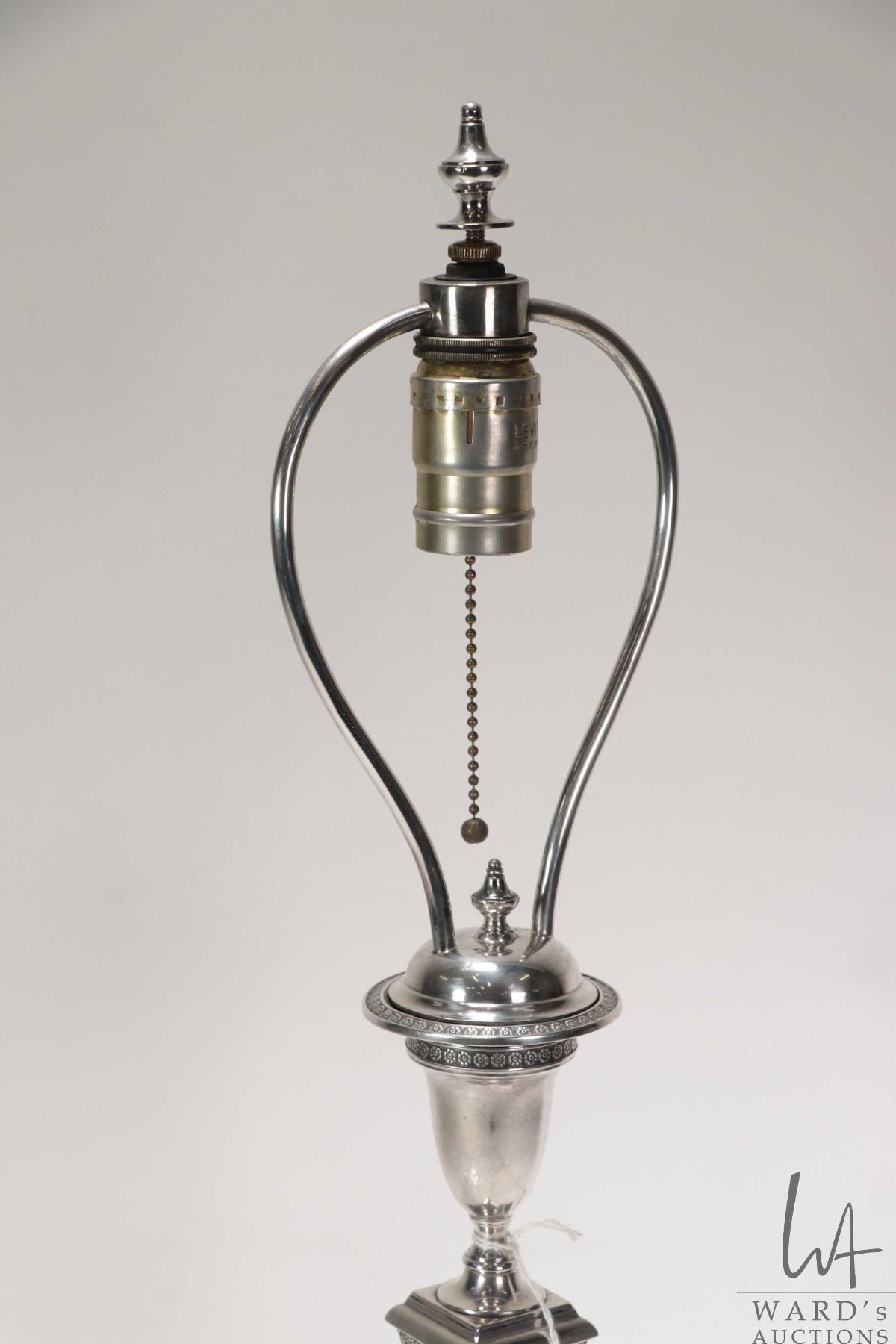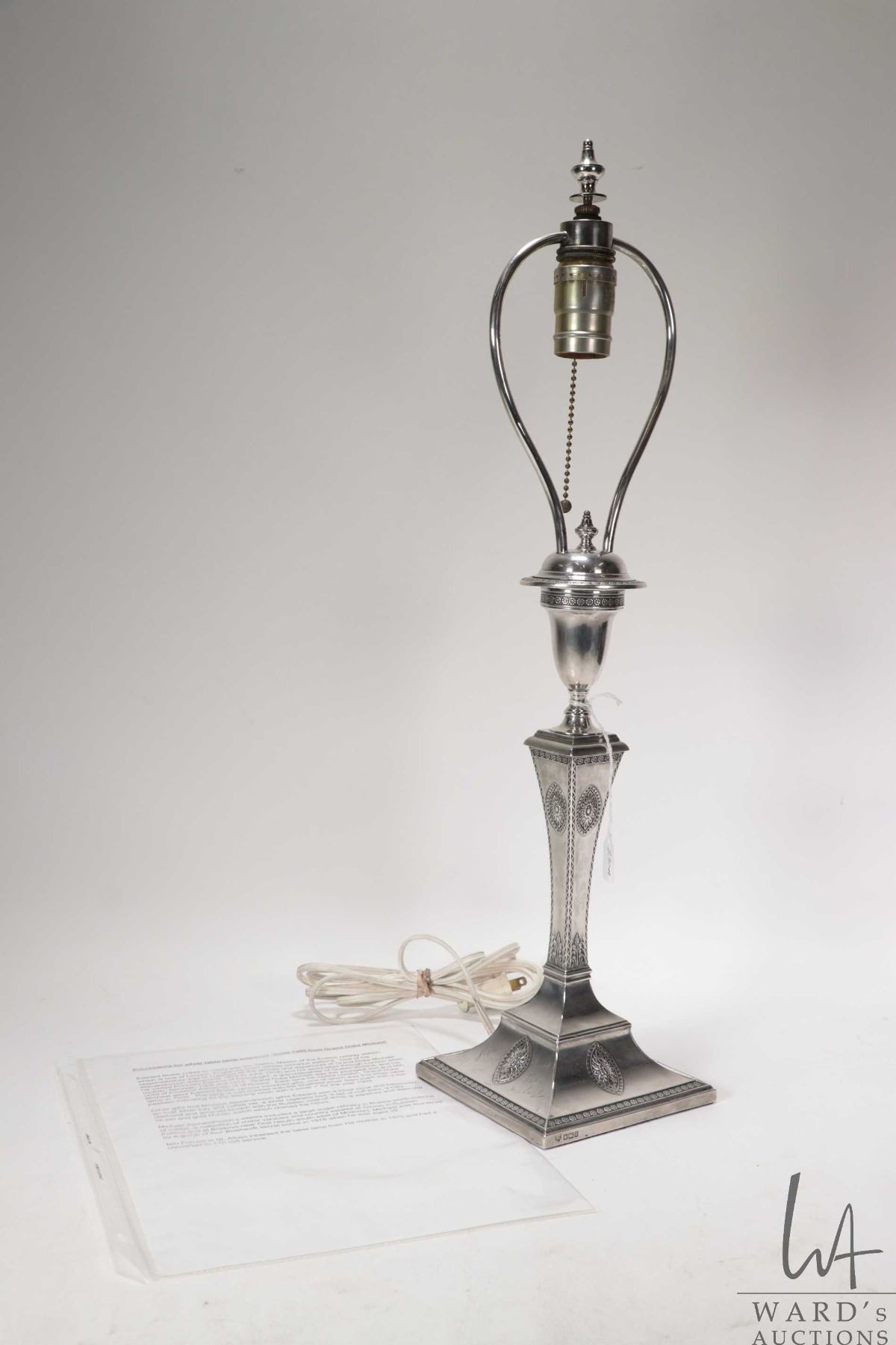 Antique sterling silver electric table lamp with a rich and royal provenance. Made by Hawksworth Eyre & Co, Sheffield in 1909. Purportedly presented and inscribed by the Grand Duke Michael Alexandrovich ( youngest son of Emperor Alexander III of Russia) at Christmas 1909 to Edward Brook (1848- 1935) who was station master at Euston Railway Station and the receipent of many gifts over many years from the Grand Duke. See photos of provenance
