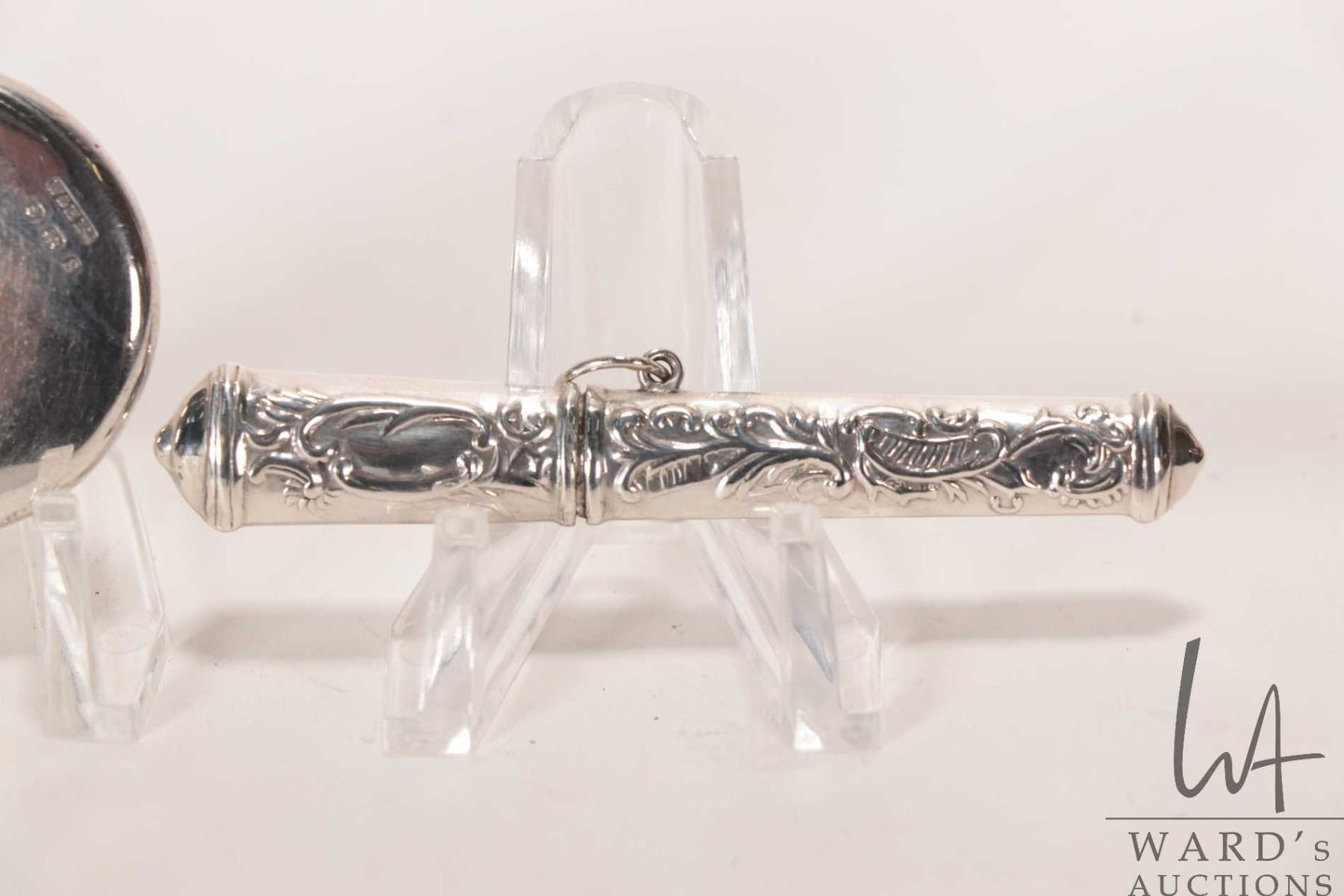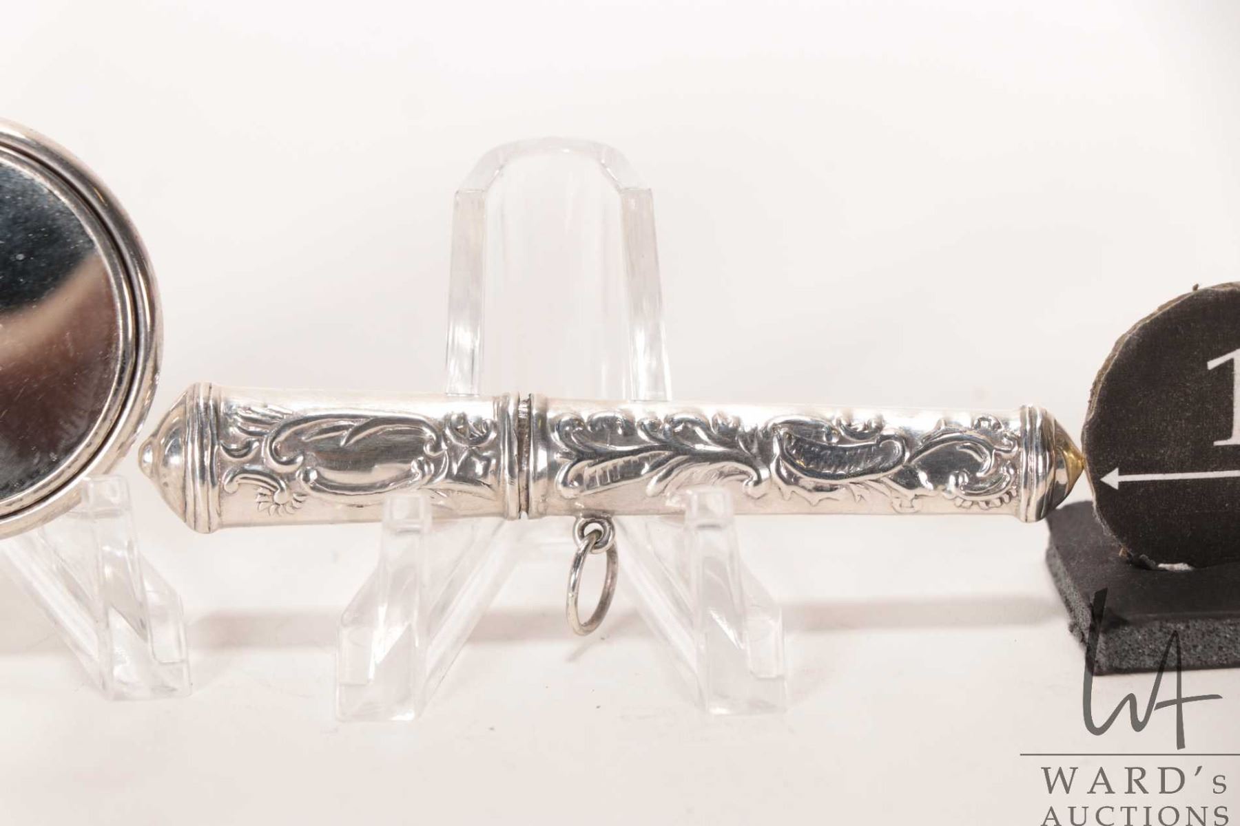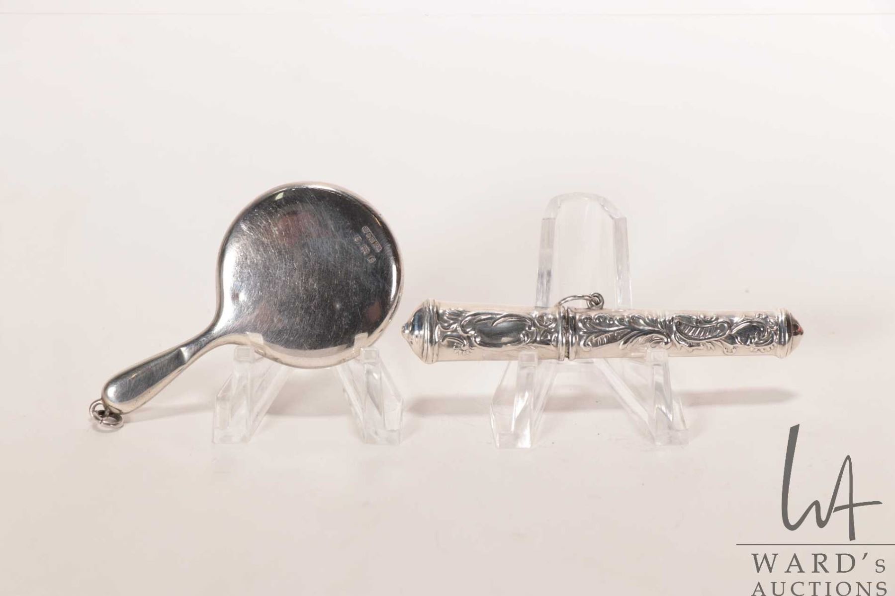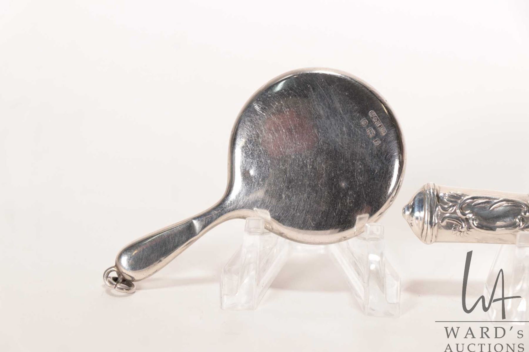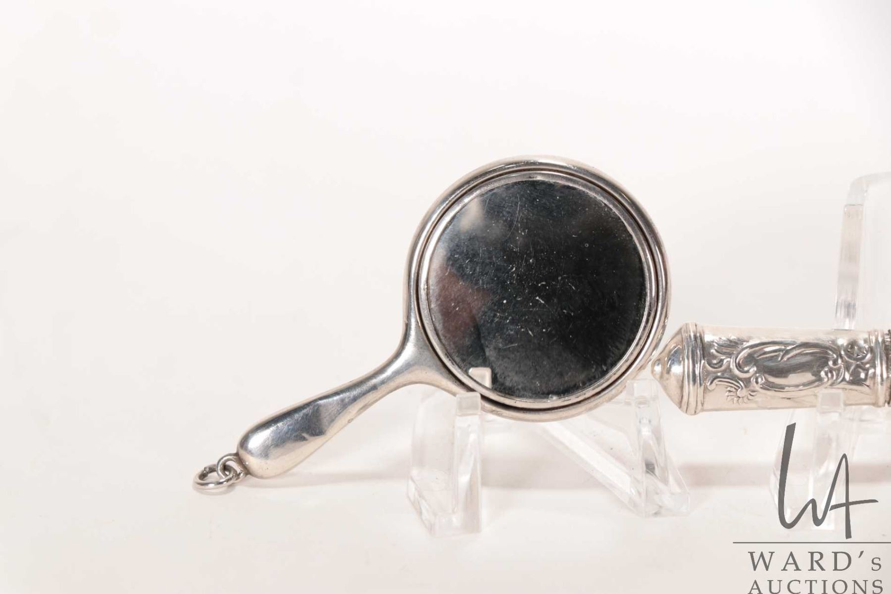 Antique sterling silver needle case and miniature hand mirror with British sterling hallmarks