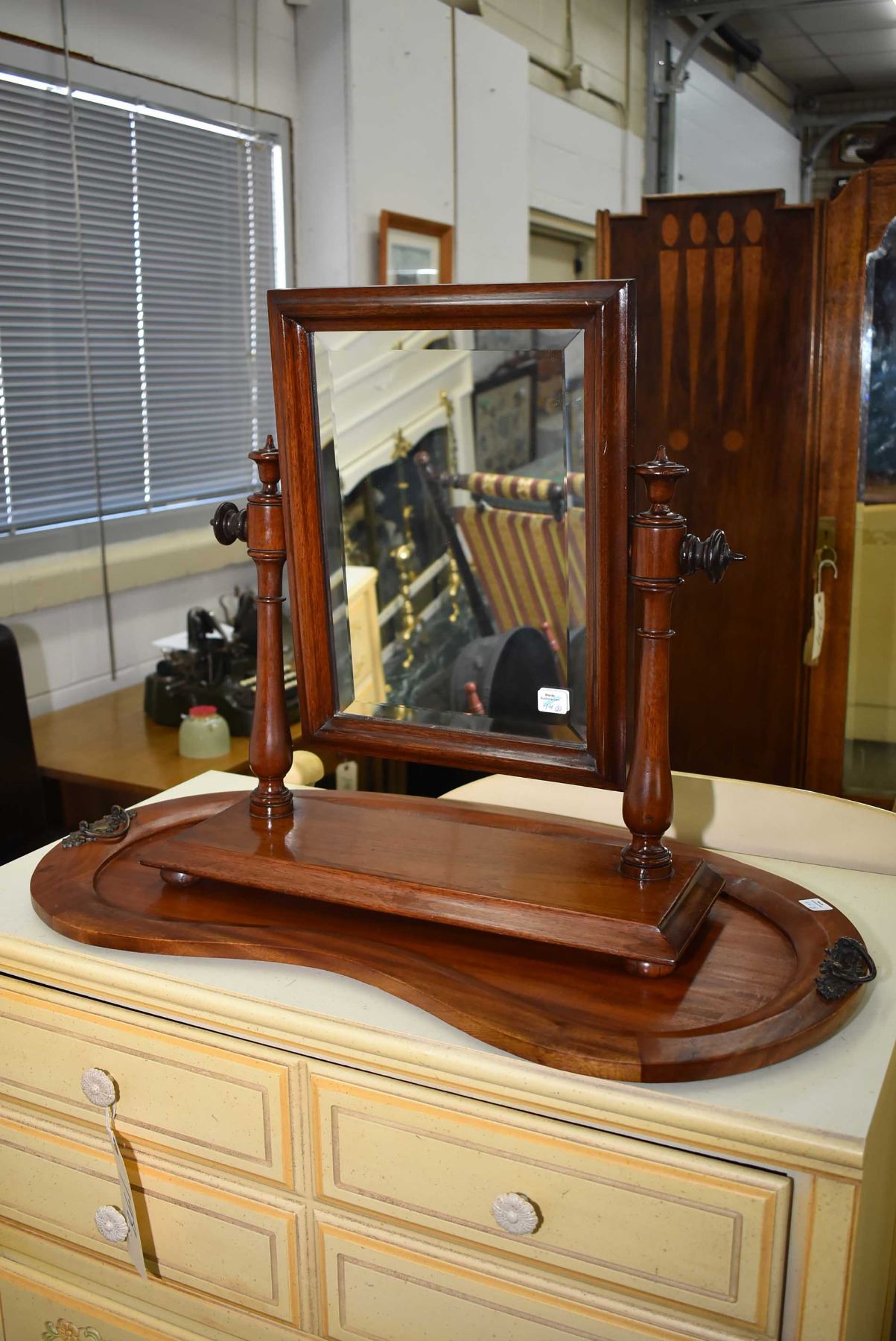 Antique style vanity top bevelled mirror and a double handled kidney shaped drinks tray