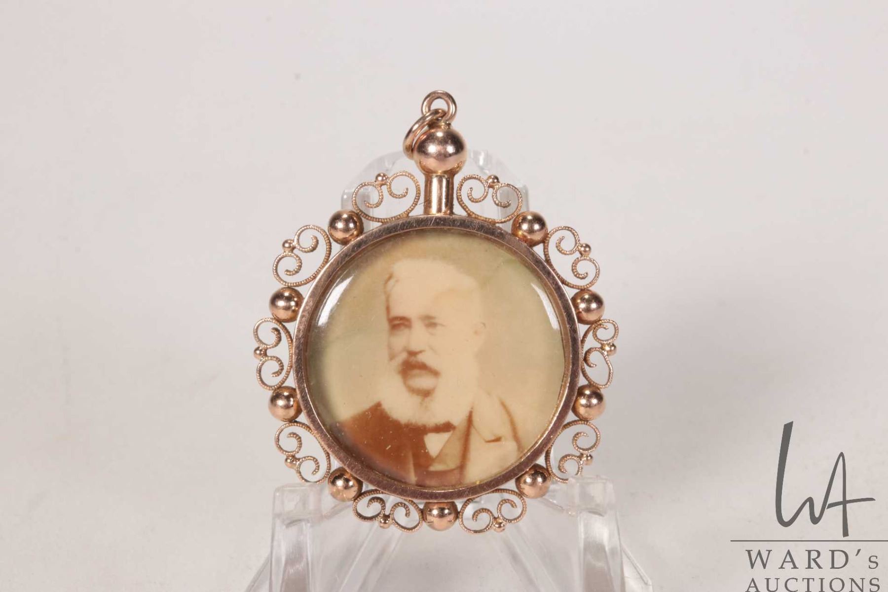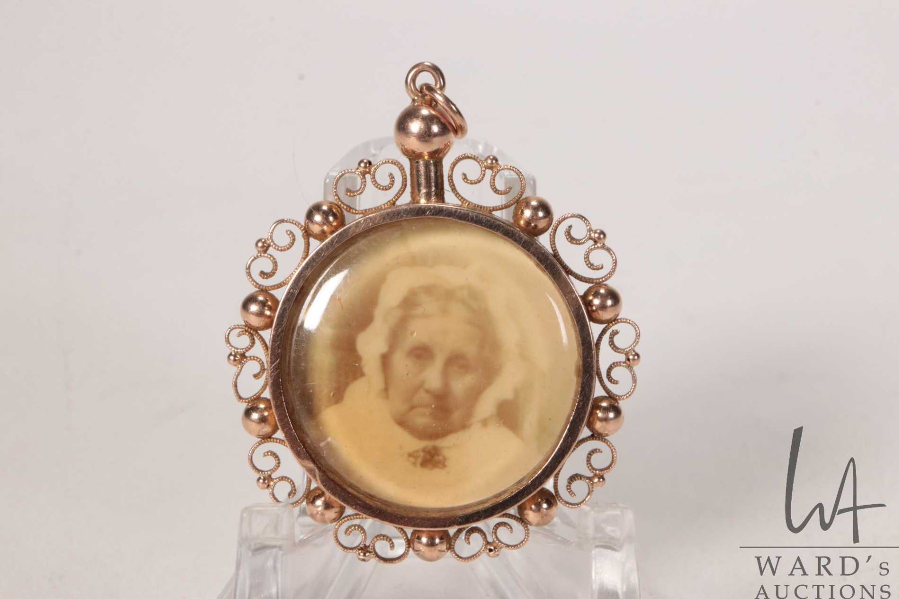 Antique tested 10kt yellow gold double sided pendant with antique photographs