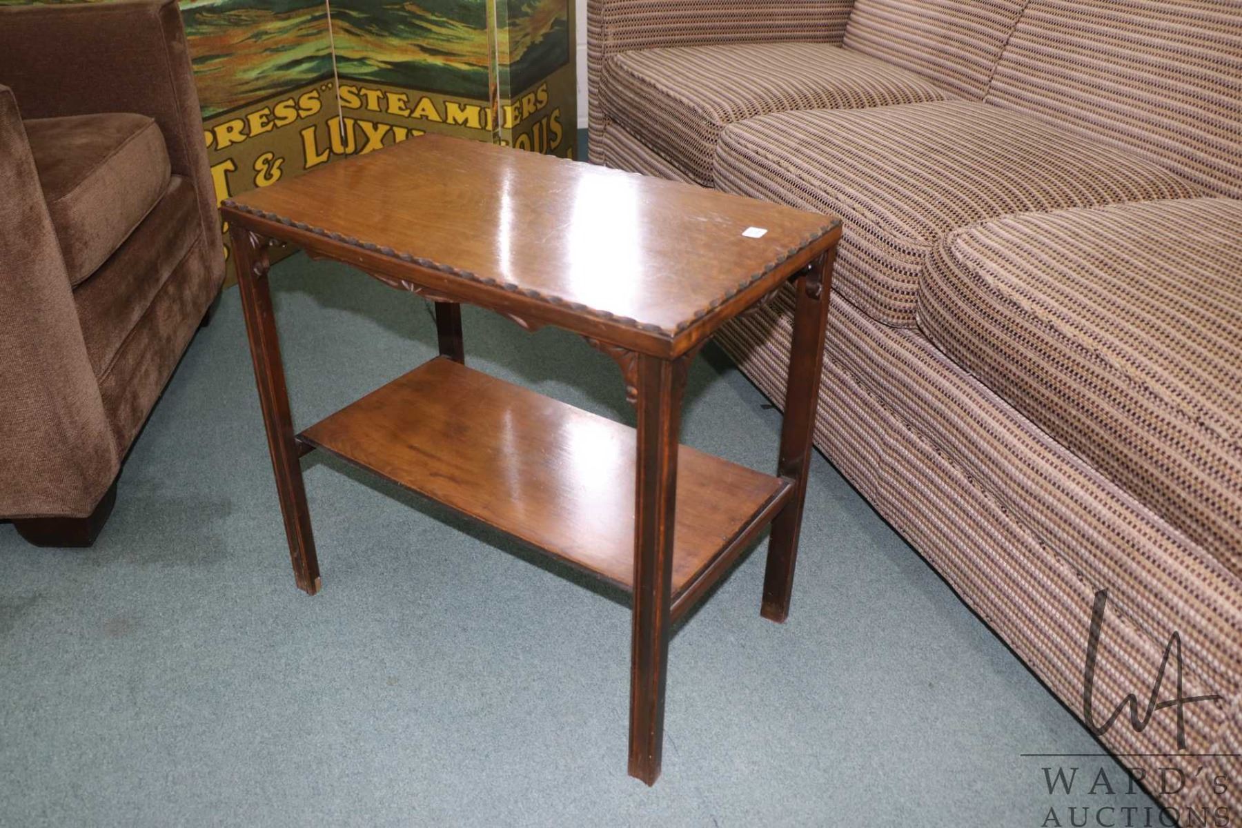 Antique two tier side table with sculpted edge, 23" H X 24" X 14"