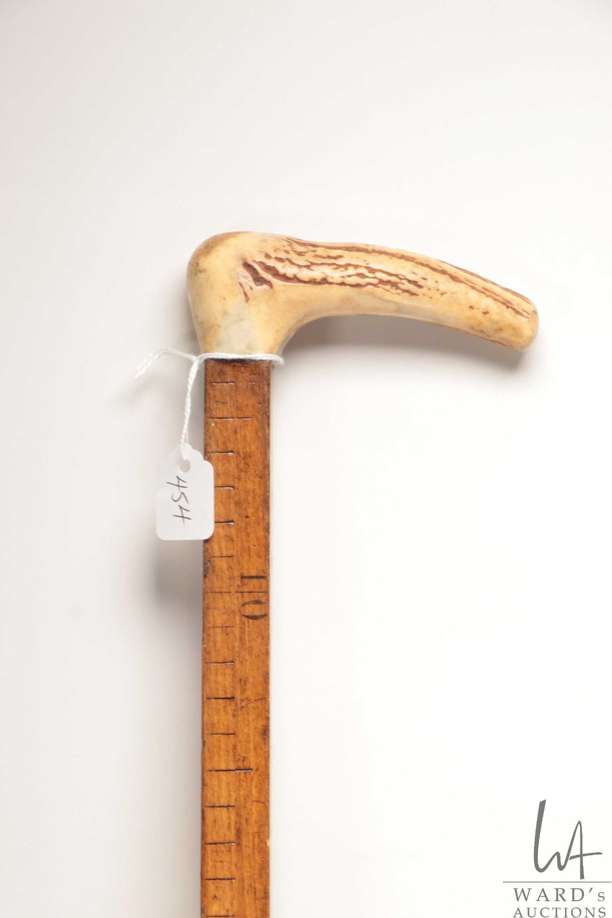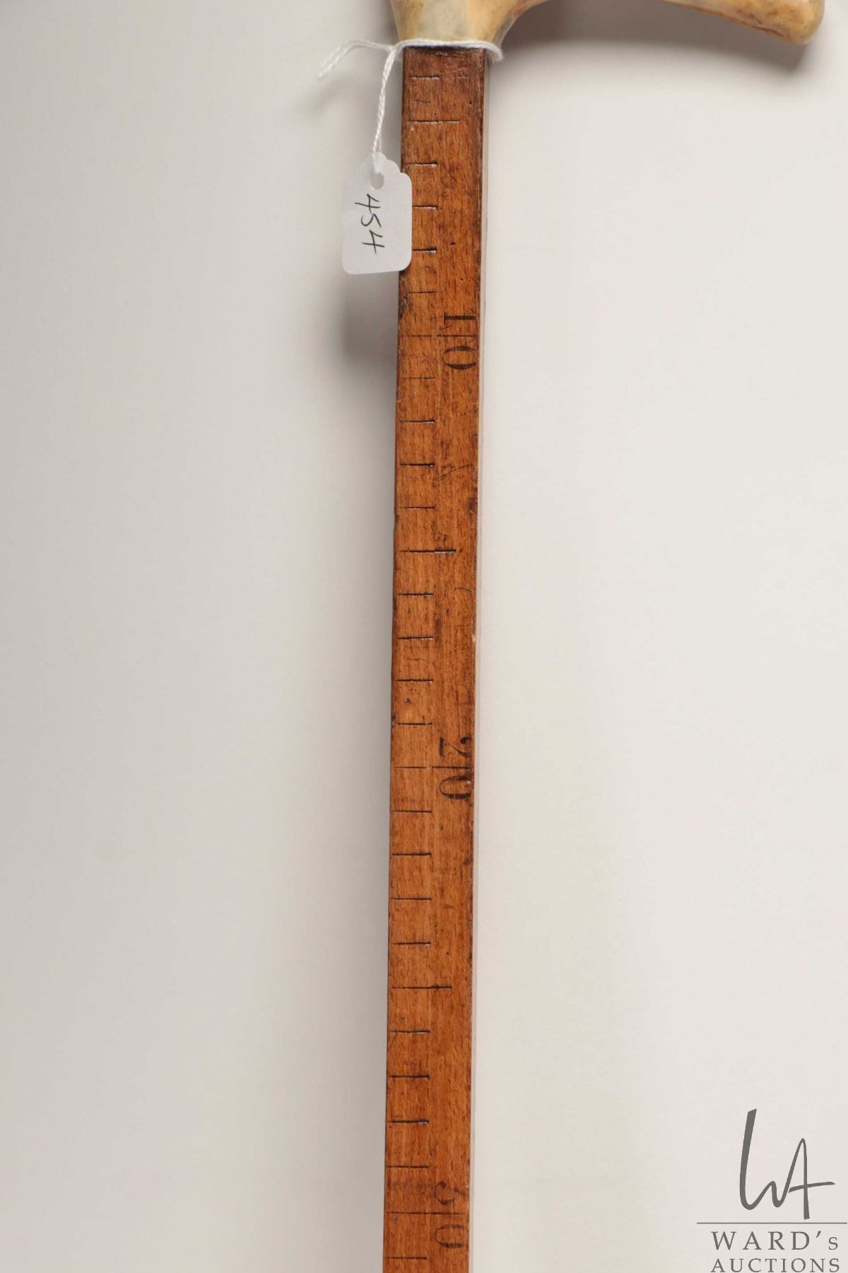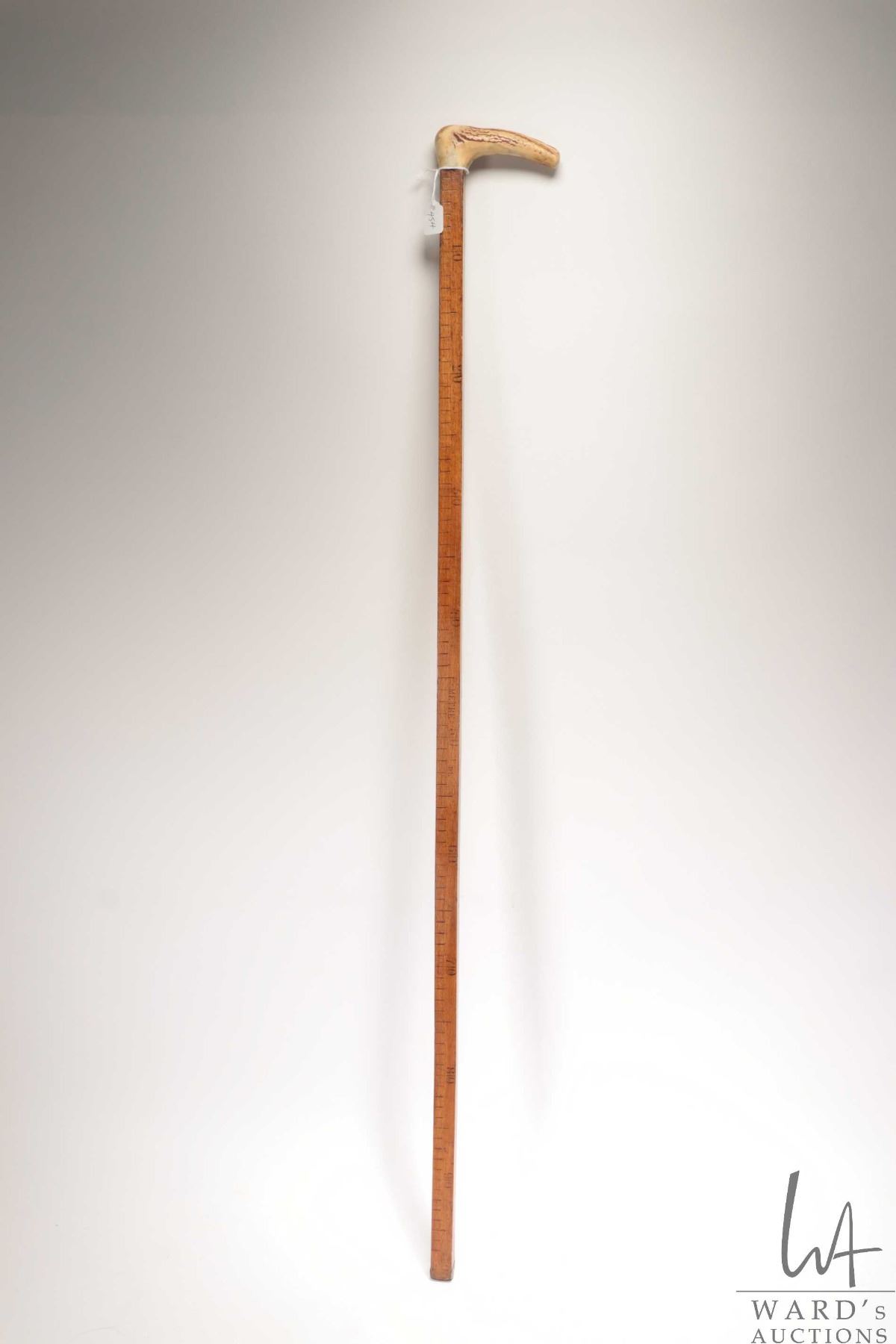 Antique/ vintage wooden walking stick made from a hardwood yard stick, with attached stag handle top