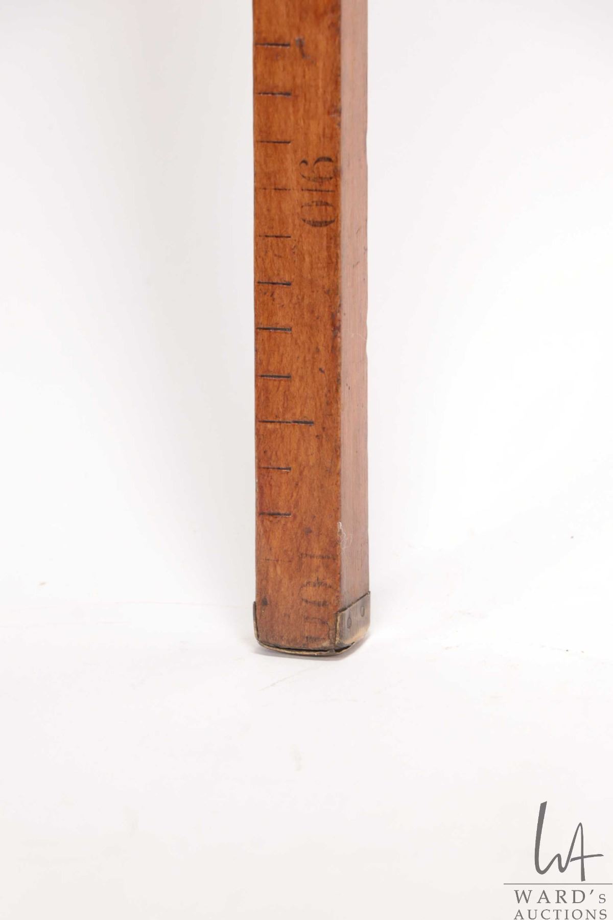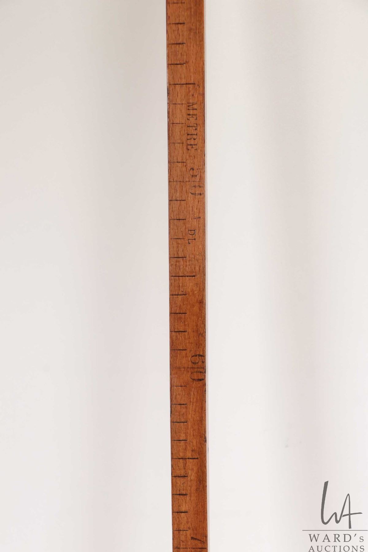 Antique/ vintage wooden walking stick made from a hardwood yard stick, with attached stag handle top and brass tip, 39 1/2" in height