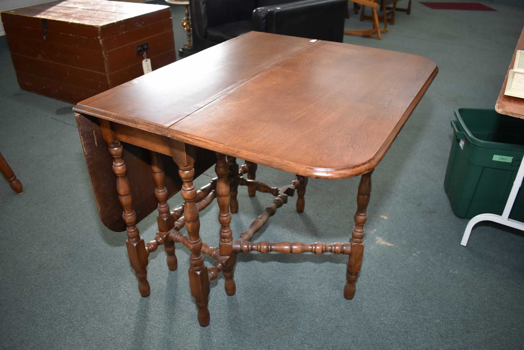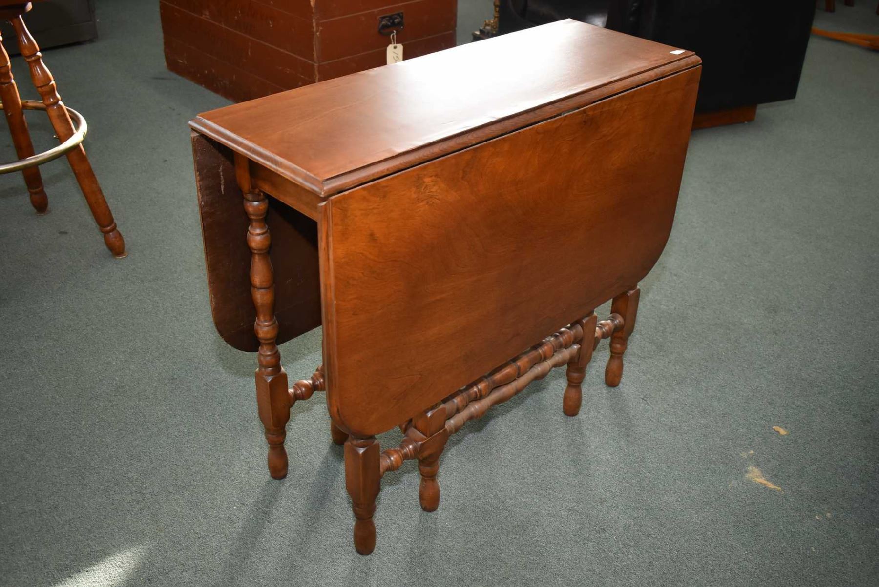 Antique walnut drop leaf gate-leg table with turned supports and legs