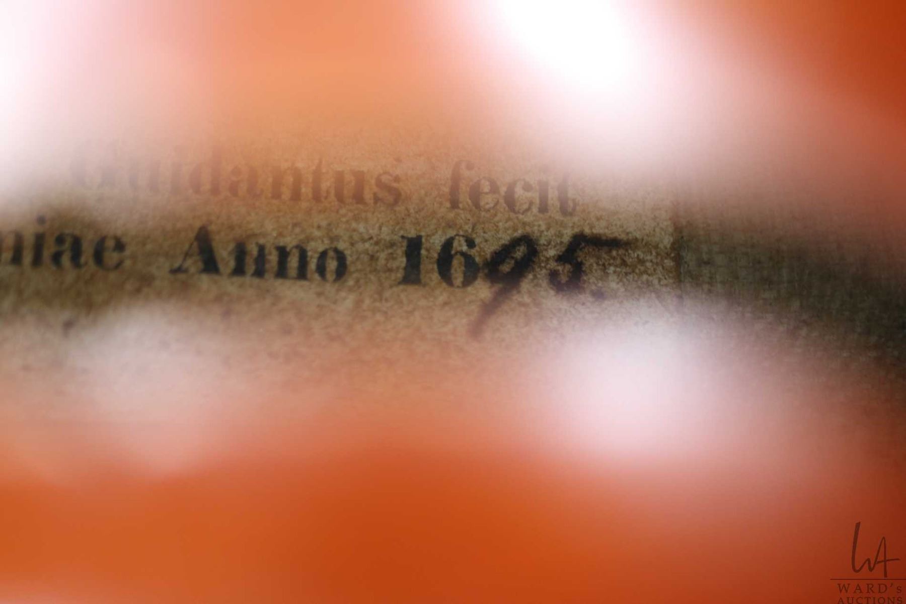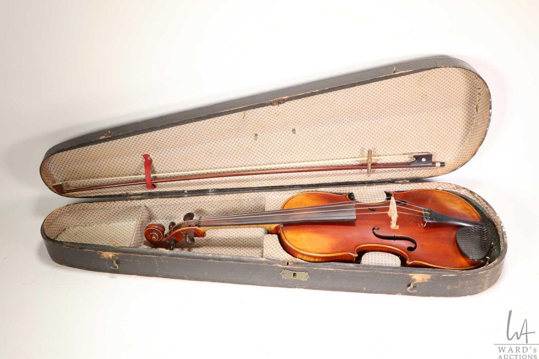 Antique wood violin labelled Florenus Gnidantus Fecit Benoniae Anno 1695, see photos, in wooden hard case with bow
