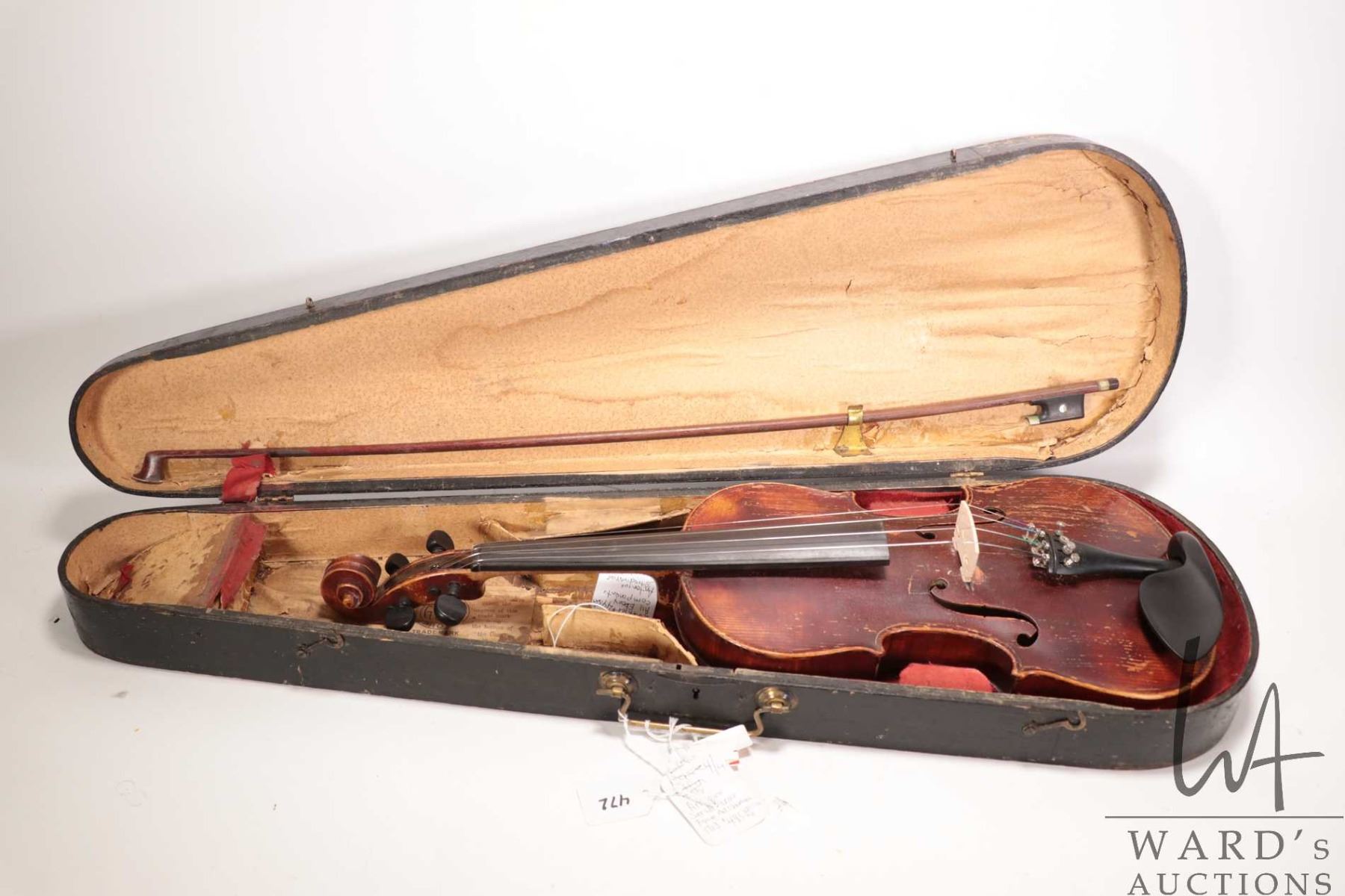 Antonius Stradivarius Cremonenfis 4/4 violin, labeled "Faciebat Anno1723". Includes worn wooden case