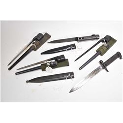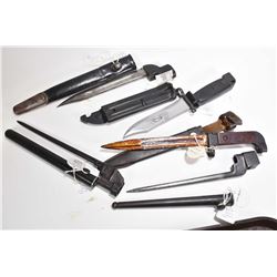 Five bayonets including as marked by consignor USSR AK47, No. 9 Lee Enfield, Canadian Long Branch no. 4 MK II etc.