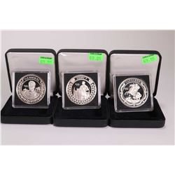Three boxed Republic of Liberia collector coins including 1997 issue , $20 "Henry V", " Hannibal" and " Napolean" each...