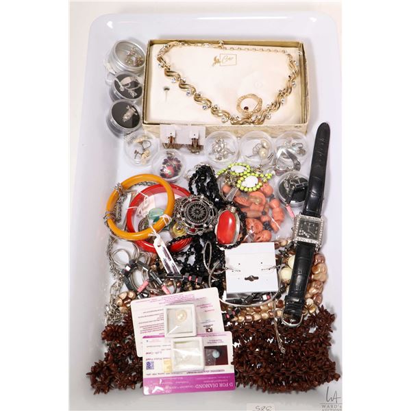 Tray lot of vintage and collectible jewellery including beaded necklaces, earrings, watch etc.