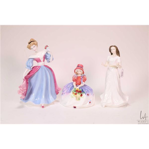 Three Royal Doulton figurines including small "Amy", "Sentiments Greetings" HN4250 and "Monica" HN1467