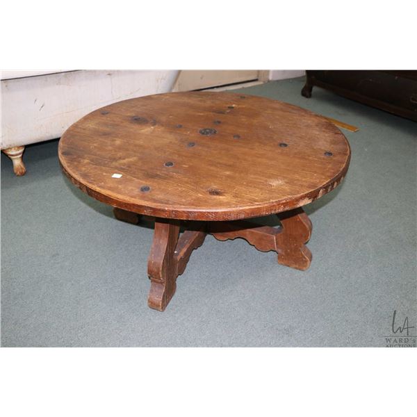 Vintage Paris snow sleigh with floating steering, a vintage catcher's mitt and a metal spoke wheel
