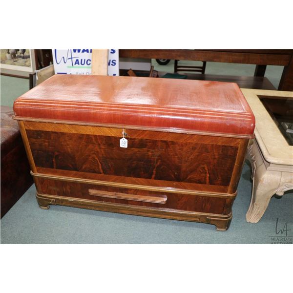 Vintage walnut cedar lined chest with drawer base by Heirloom, note top has been refinished