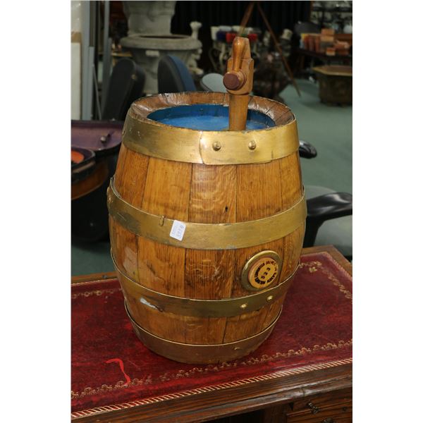 Antique hand hammered copper bowl with double brass handles, 17" in diameter