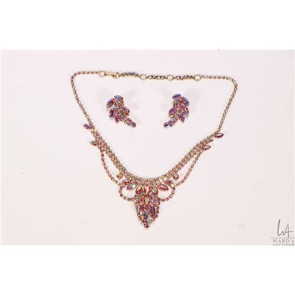 Vintage gold tone suite of crystal gem like jewellery including necklace and matching earrings