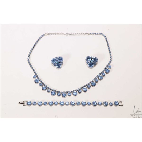 Boxed suite of signed Weiss crystal gemstone like jewellery including necklace, matching earrings and bracelet, note in original Albert Weiss jewel ca