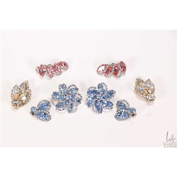 Four pairs of vintage signed Weiss crystal gemstone like earrings