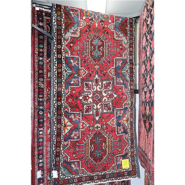 100% handmade Iranian Qarajeh wool carpet runner with multiple medallions and red background plus highlights of orange, green and blue etc. 38"...