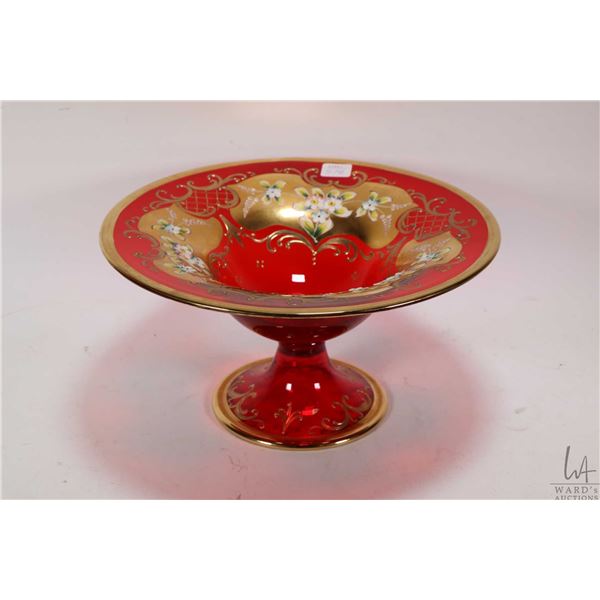 Five pieces of decorative art glass including pink signed Val St. Lambert swirl bowl, Italian Murano
