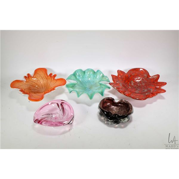Five pieces of decorative art glass including pink signed Val St. Lambert swirl bowl, Italian Murano copper and silver inclusion bowl, three unmarked