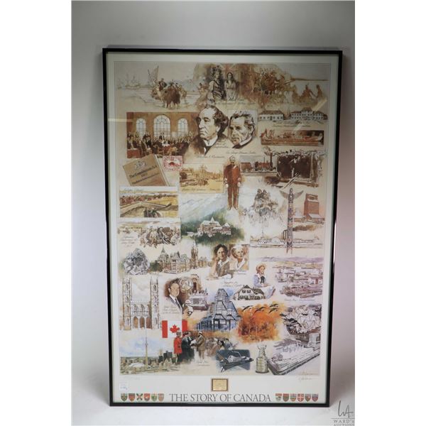 Two framed artworks including a June 3rd 1944 Star Weekly magazine cover print and "The History of Canada" with inset gold postage stamp m...