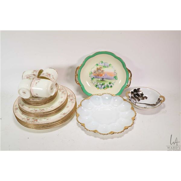Lot of six Coalport hand painted Indian Tree teacups and saucers plus nine retro pink cherry blossom glass dinner plates 9" in diameter. Note: ...