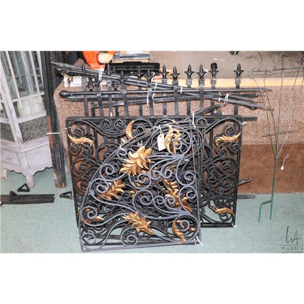 Selection of wrought iron garden fencing including three 30" tall X 36" sections, two sections 24" X