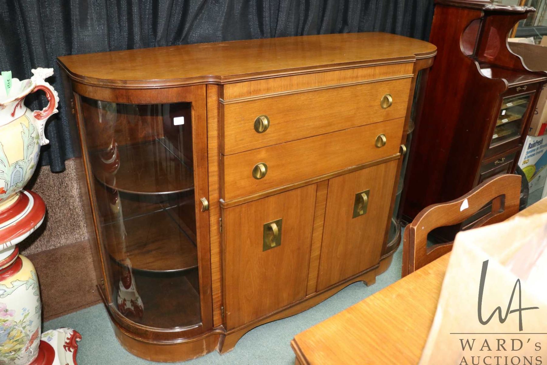 Art Deco curved glass sideboard made by Knechtel to match lot 341, 38" H X 53" W X 19" D